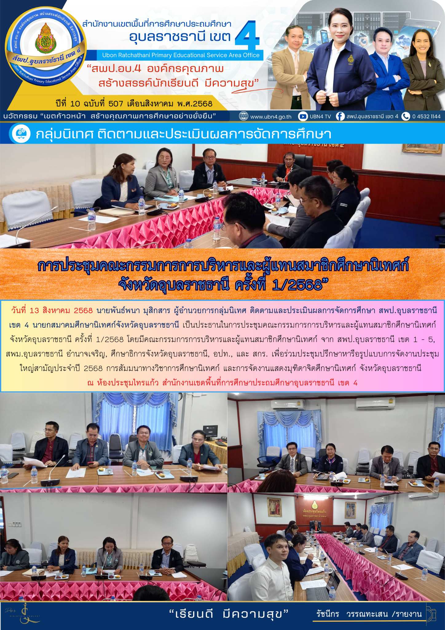 การประชุมคณะกรรมการการบริหารและผู้แทนสมาชิกศึกษานิเทศก์ จังหวัดอุบลราชธานี ครั้งที่ 1/2568 ก่อนหน้า ต่อไป