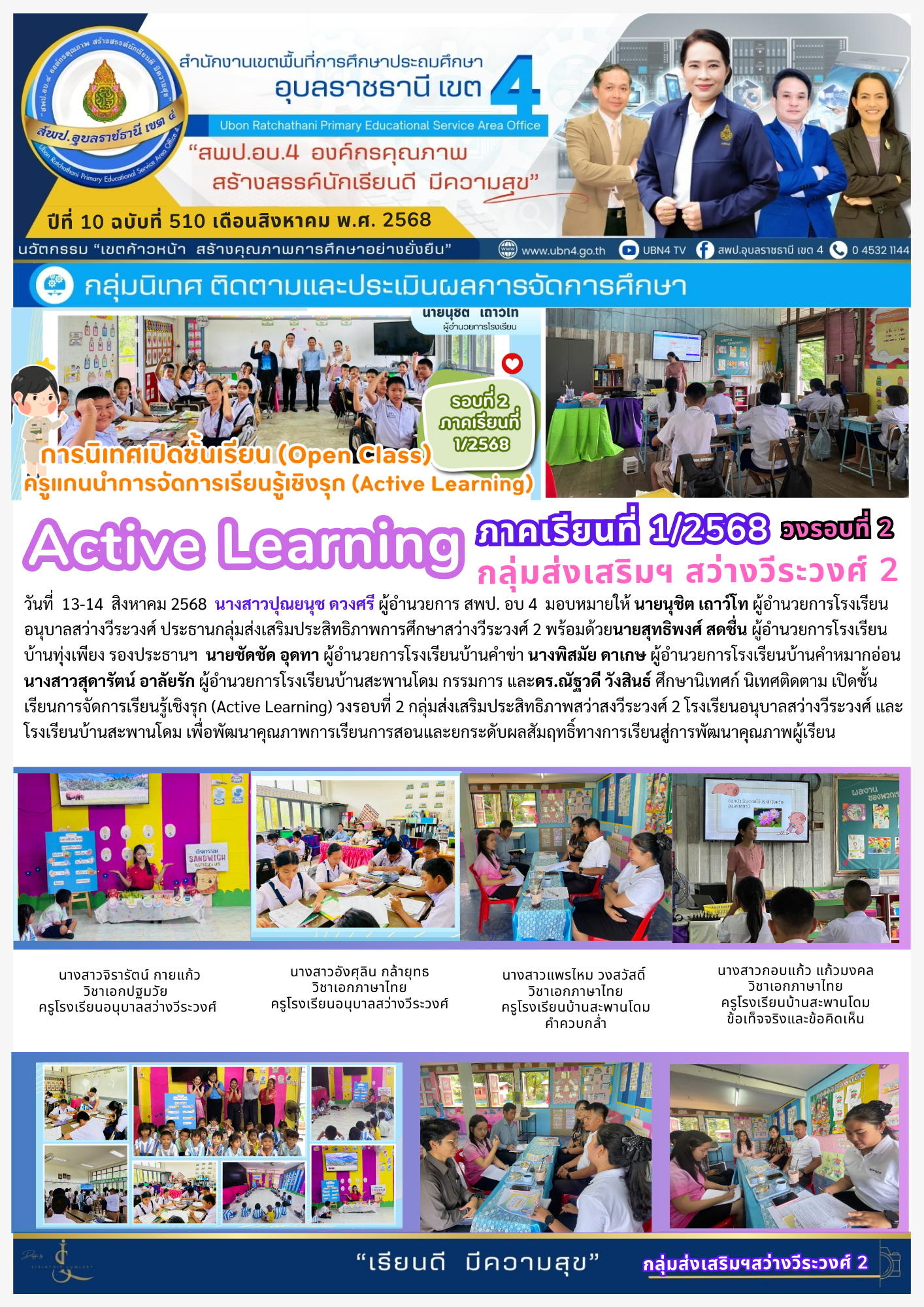 การนิเทศเปิดชั้นเรียน (Open Class) ครูแกนนำการจัดการเรียนรู้เชิงรุก (Active Learning) ภาคเรียนที่ 1/2568 วงรอบที่2 กลุ่มส่งเสริมฯ สว่างวีระวงศ์2 ก่อนหน้า ต่อไป