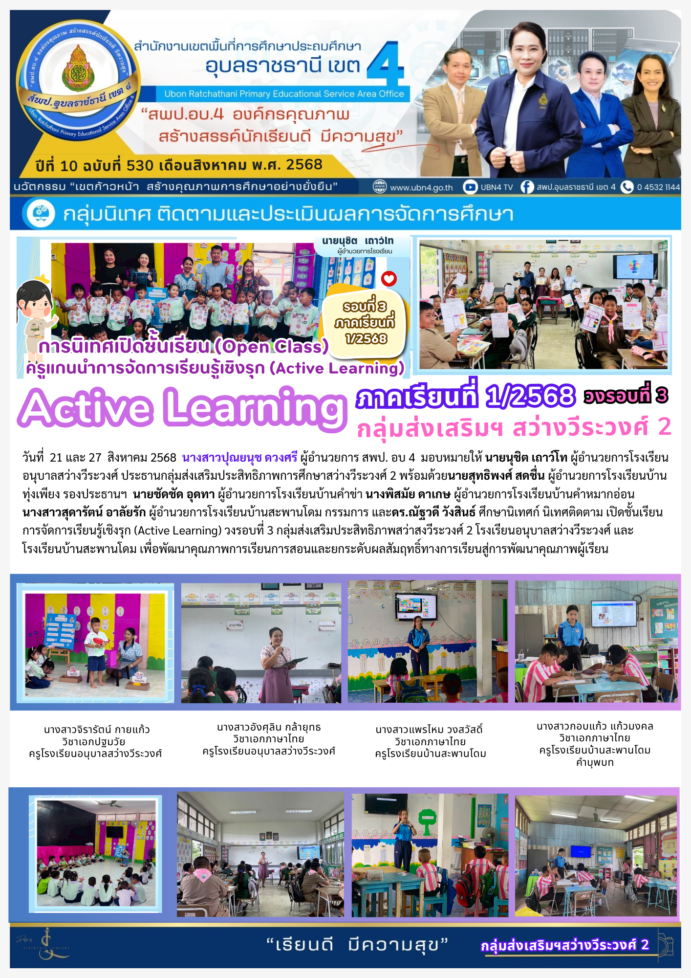 การนิเทศเปิดชั้นเรียน (Open Class) ครูแกนนำการจัดการเรียนรู้เชิงรุก (Active Learning) ภาคเรียนที่ 1/2568 วงรอบที่3 กลุ่มส่งเสริมฯ สว่างวีระวงศ์2 ก่อนหน้า ต่อไป