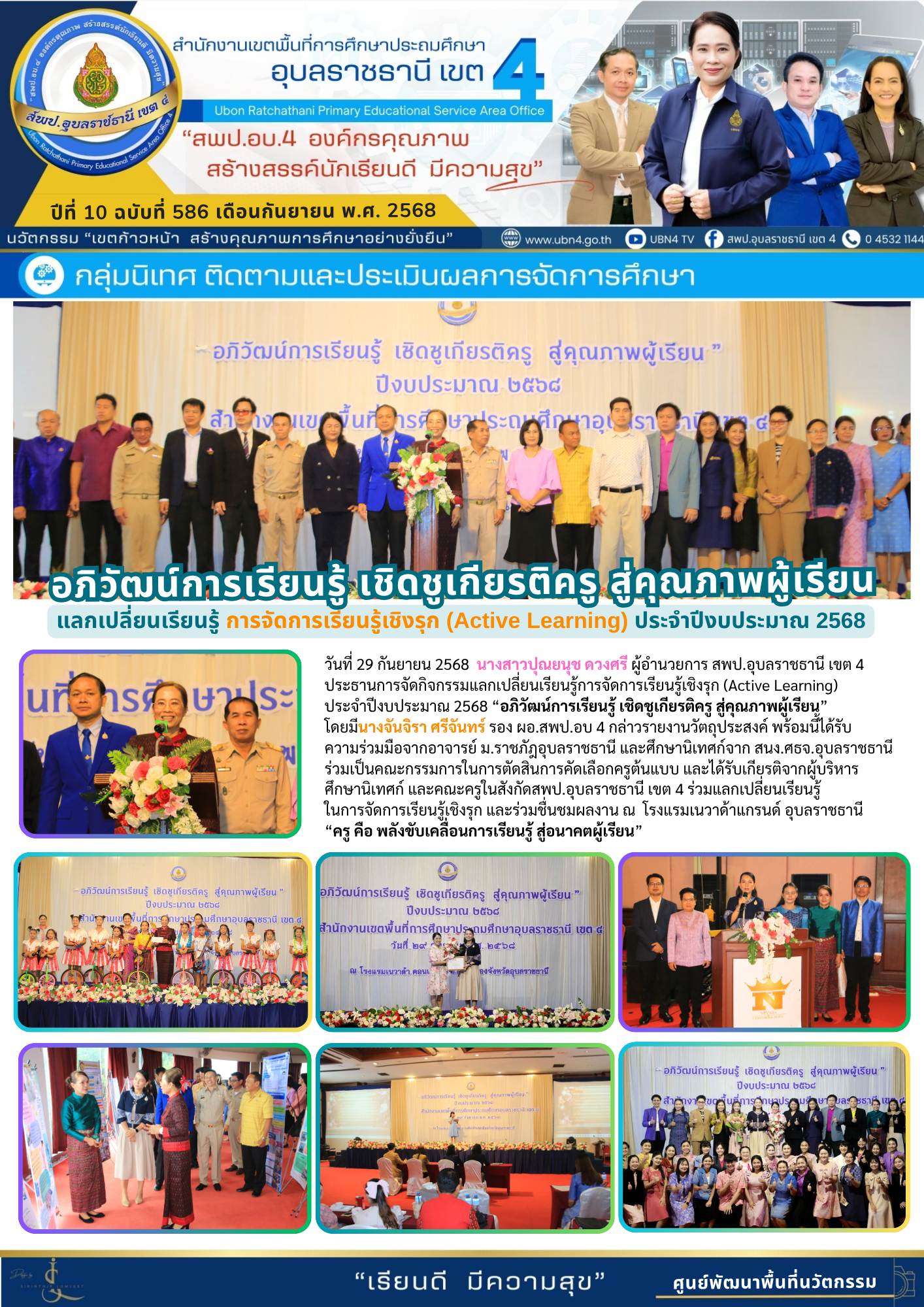อภิวัฒน์การเรียนรู้ เชิดชูเกียรติครู สู่คุณภาพผู้เรียน แลกเปลี่ยนเรียนรู้ การจัดการเรียนรู้เชิงรุก (Active Learning) ประจำปีงบประมาณ 2568 ภารกิจ ผอ.สพป.อุบลราชธานี เขต 4 ภารกิจ ดร.ศักดิ์สิทธิ์ สุภสร ภารกิจ นางจันจิรา ศรีจันทร์ ก่อนหน้า ต่อไป