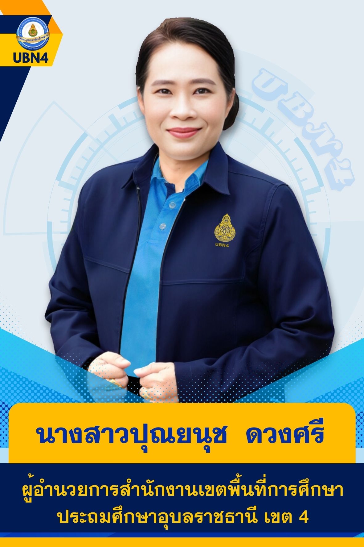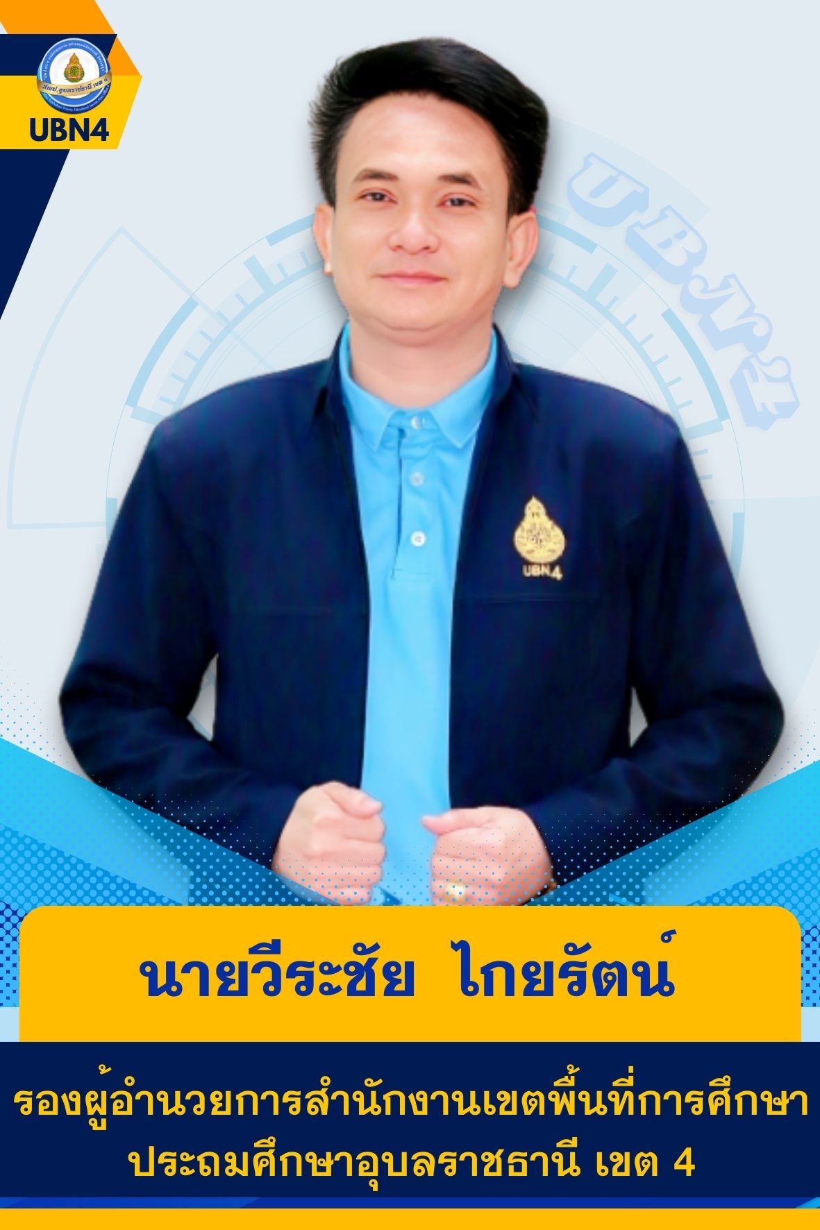 บุคลากรกลุ่มนโยบายและแผน ผู้อำนวยการสำนักงานเขตพื้นที่การศึกษาประถมศึกษาอุบลราชธานี เขต 4 รองผู้อำนวยการสำนักงานเขตพื้นที่การศึกษาประถมศึกษาอุบลราชธานี เขต 4 ผู้อำนวยการกลุ่ม บุคลากร ก่อนหน้า ต่อไป