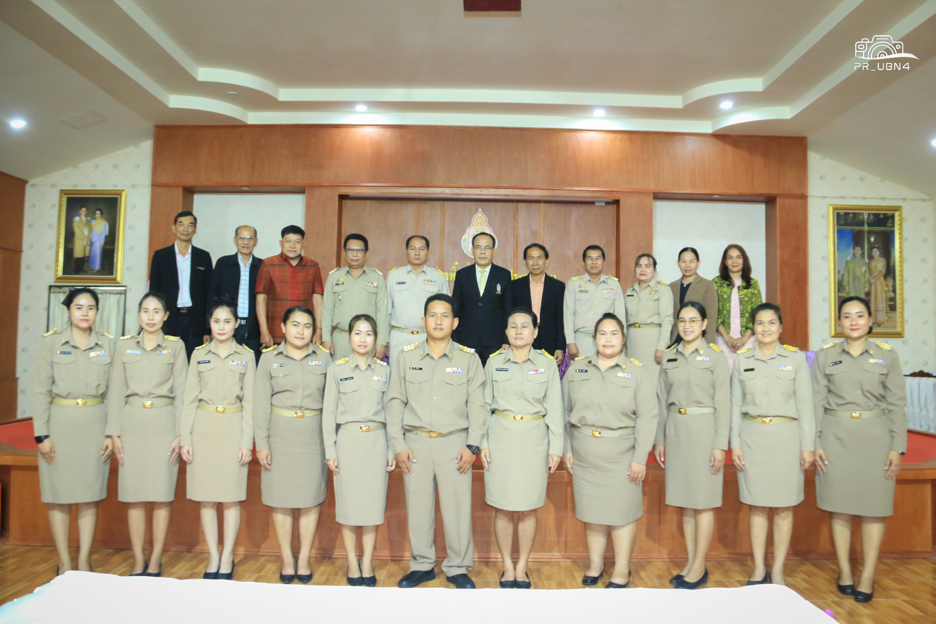 นายชาญชัย ทองแสน ผู้อำนวยการสำนักงานเขตพื้นที่การศึกษาประถมศึกษาอุบลราชธานี เขต 4 พร้อมด้วย ดร.เธียนไท คำล้าน ประธาน อ.ก.ค.ศ. เขตพื้นที่การศึกษาประถมศึกษาอุบลราชธานี เขต 4 นายธำรง สุภาการ อนุกรรมการ อ.ก.ค.ศ. (ผู้แทน ก.ค.ศ.) และ ดร.วีระศักดิ์ คำล้าน รอง ผอ.สพป.อุบลราชธานี เขต 4 กล่าวแสดงความยินดี พบปะให้โอวาทและมอบข้อคิดในการปฏิบัติราชการ ให้กับผู้ผ่านการคัดเลือกเพื่อบรรจุและแต่งตั้งเข้ารับราชการครูและบุคลากรทางการศึกษา ตำแหน่ง ครูผู้ช่วย จำนวน 11 ราย