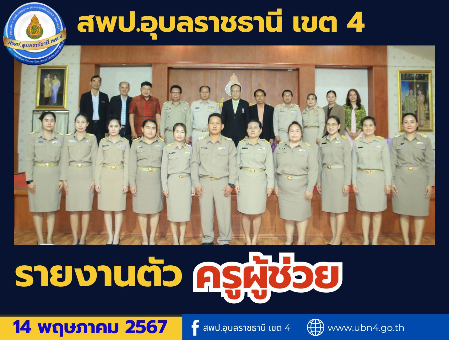 สพป.อุบลราชธานี เขต 4 รายงานตัวผู้ผ่านการคัดเลือกเพื่อบรจุและแต่งตั้งให้ดำรงตำแหน่งครูผู้ช่วย กรณีพิเศษฯ สังกัดสำนักงานคณะกรรมการการศึกษาขั้นพื้นฐาน ปี พ.ศ. 2567