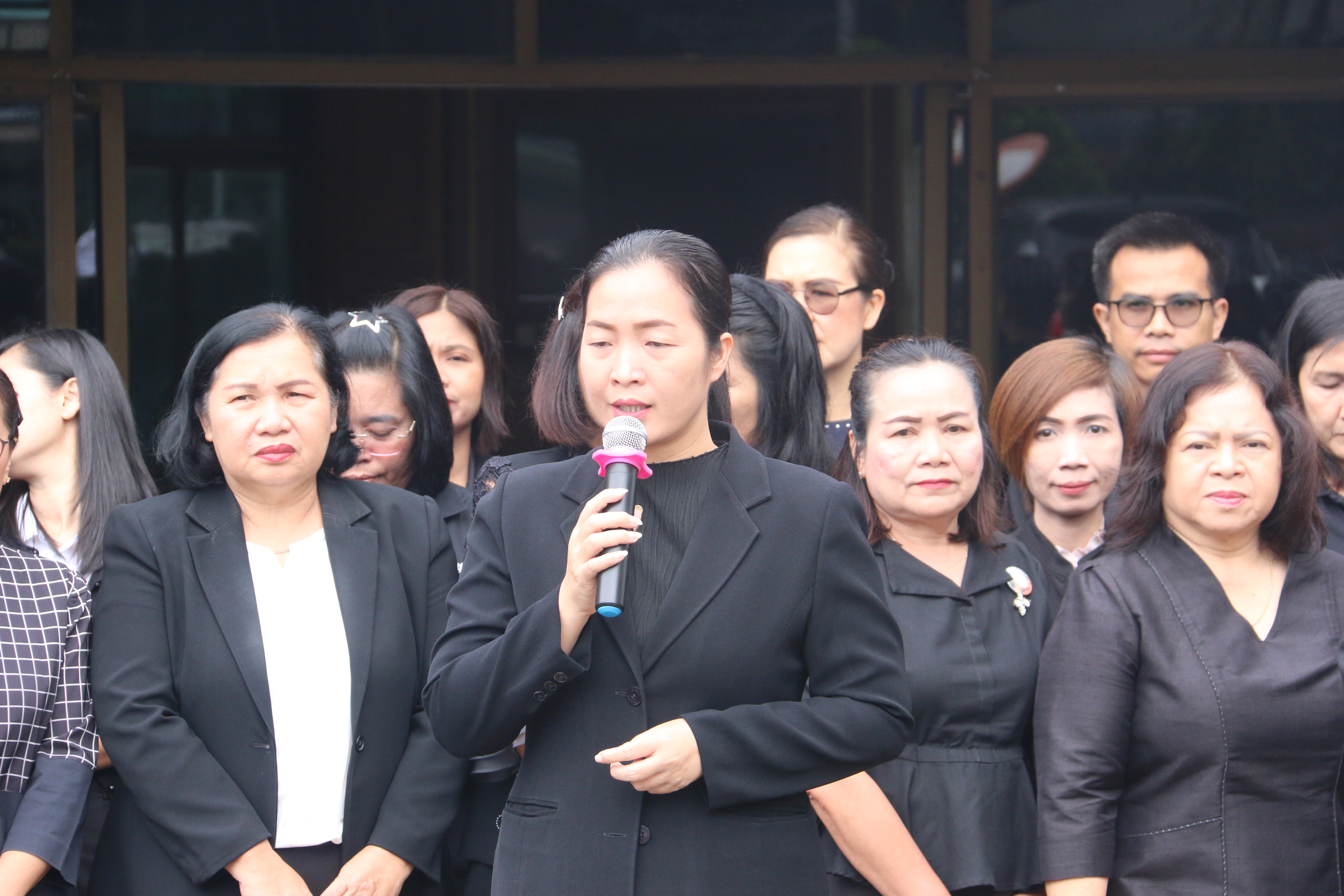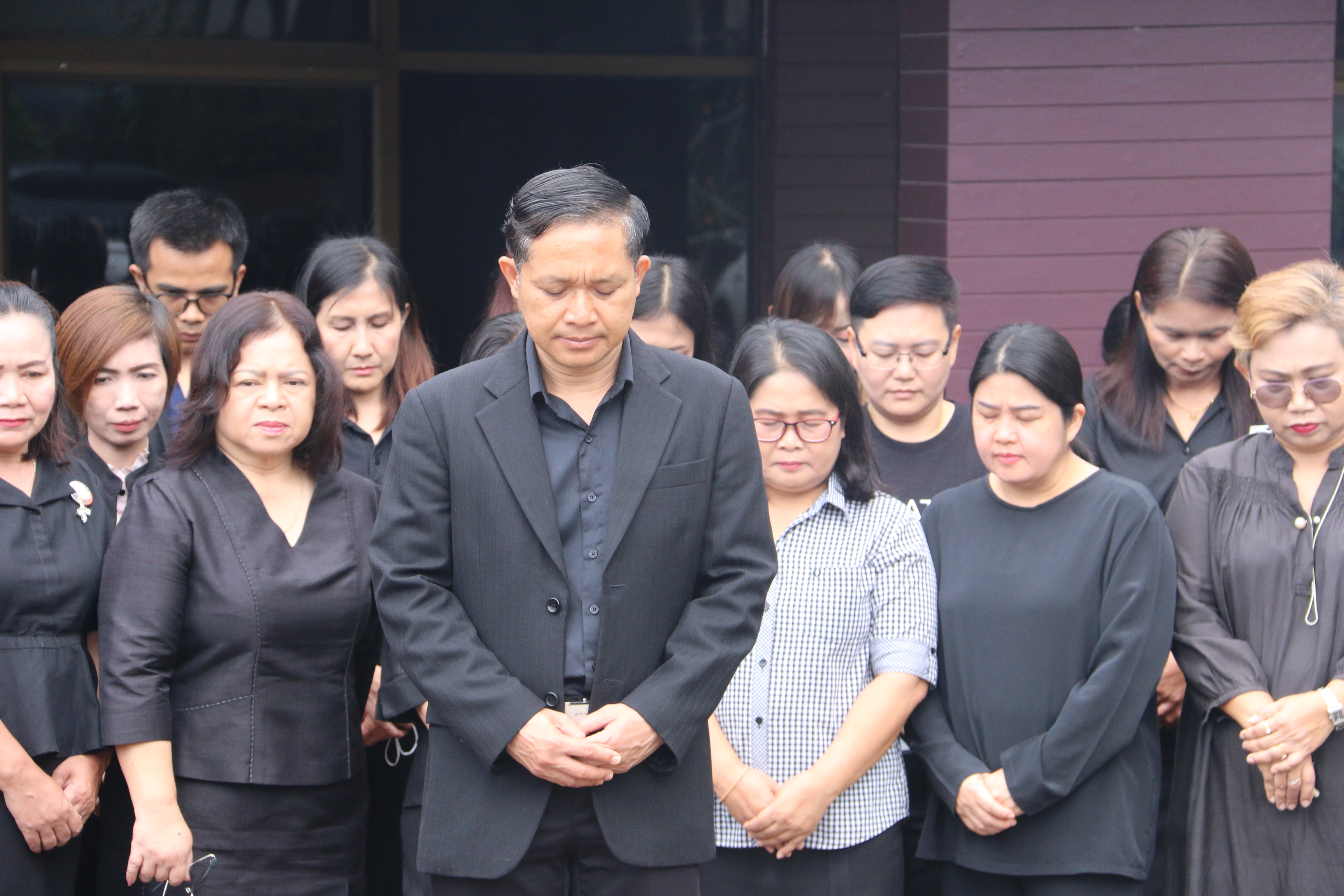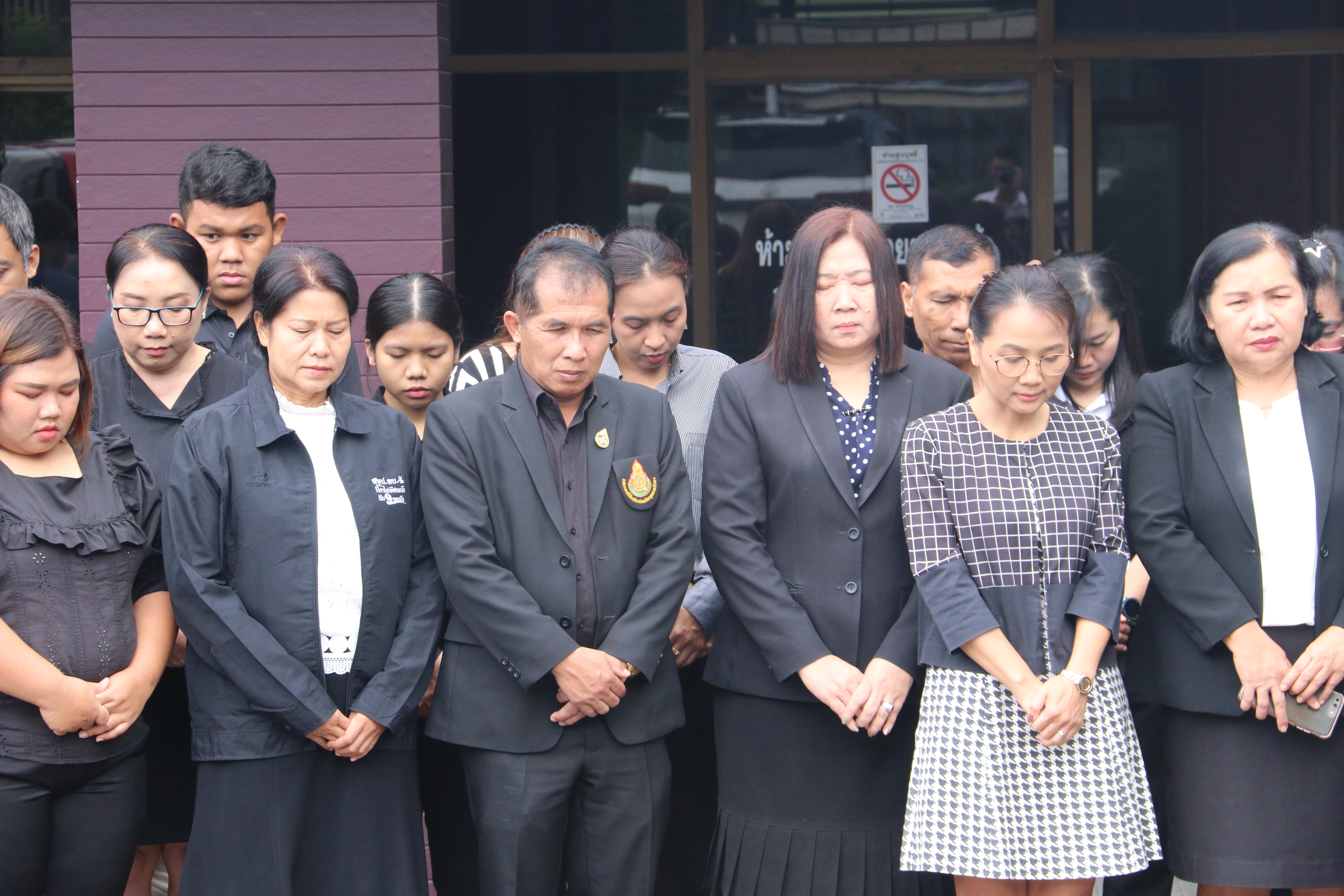 นางวันดี ละศรีจันทร์ รองผู้อำนวยการสำนักงานเขตพื้นที่การศึกษาประถมศึกษาอุบลราชธานี เขต 4 พร้อมด้วย ดร.ศักดิ์สิทธิ์ สุภสร รองผู้อำนวยการสำนักงานเขตพื้นที่การศึกษาประถมศึกษาอุบลราชธานี เขต 4 นำบุคลากรในสังกัดร่วมยืนสงบนิ่งเพื่อไว้อาลัยแด่นักเรียนและคุณครูที่เสียชีวิต จากเหตุการณ์รถบัสทัศนศึกษาเกิดเพลิงไหม้ โรงเรียนวัดเขาพระยาสังฆาราม จังหวัดอุทัยธานี เมื่อวันที่ 3 ตุลาคม 2567 ณ บริเวณหน้าอาคารอำนวยการ สพป.อุบลราชธานี เขต 4