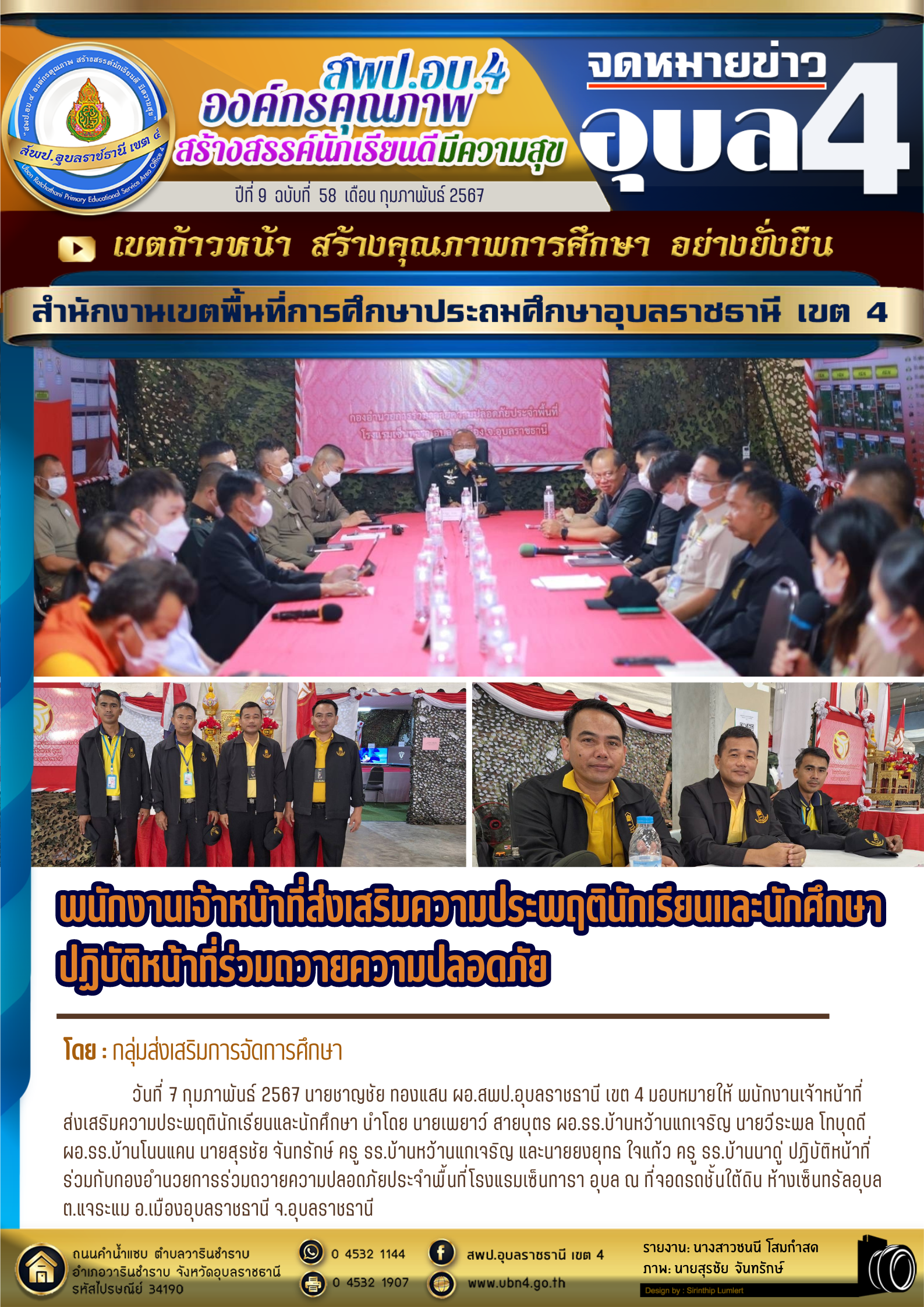 พนักงานเจ้าหน้าที่ส่งเสริมความประพฤตินักเรียนและนักศึกษาปฏิบัติหน้าที่ร่วมถวายความปลอดภัย จดหมายข่าวกลุ่มส่งเสริมการจัดการศึกษา ก่อนหน้า ต่อไป