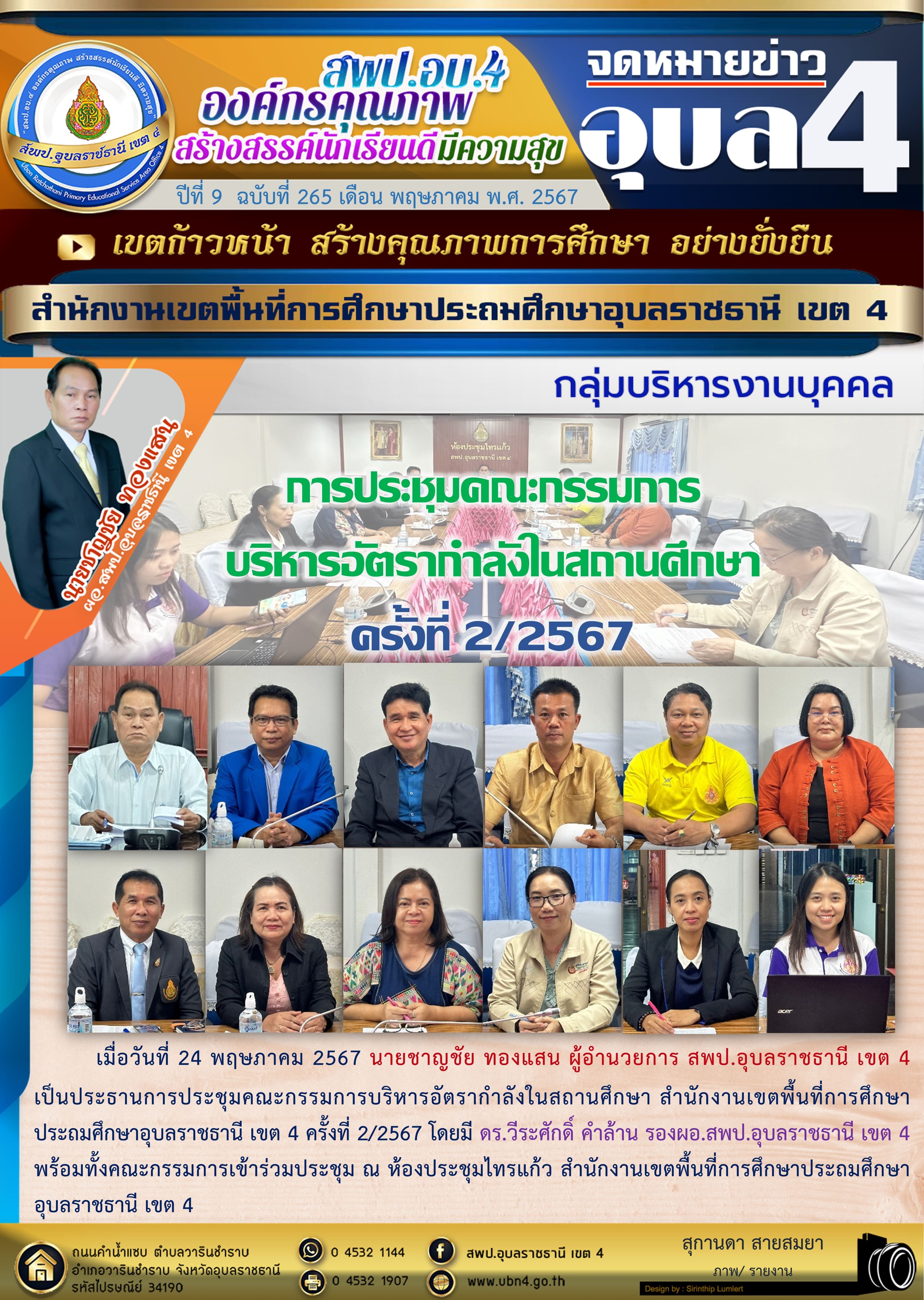 การประชุมคณะกรรมการบริหารอัตรากำลังในสถานศึกษา จดหมายข่าวกลุ่มบริหารงานบุคคล ภารกิจ ผอ.สพป.อุบลราชธานี เขต 4 ก่อนหน้า ต่อไป