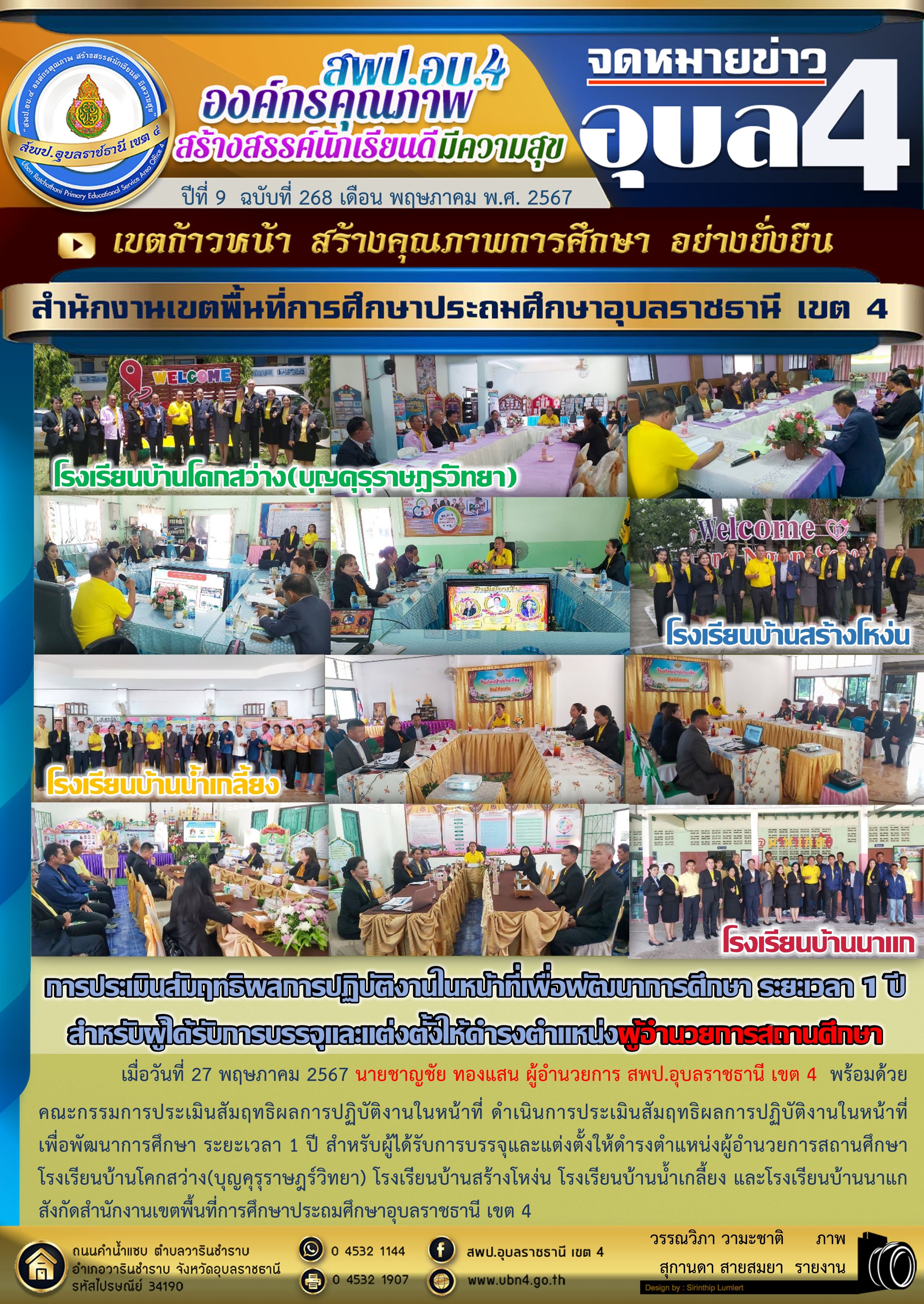 การประเมินสัมฤทธิผลการปฏิบัติงานในหน้าที่เพื่อพัฒนาการศึกษาตำแหน่งผู้อำนวยการสถานศึกษา ในระยะเวลา 1 ปี จดหมายข่าวกลุ่มบริหารงานบุคคล ภารกิจ ผอ.สพป.อุบลราชธานี เขต 4 ก่อนหน้า ต่อไป