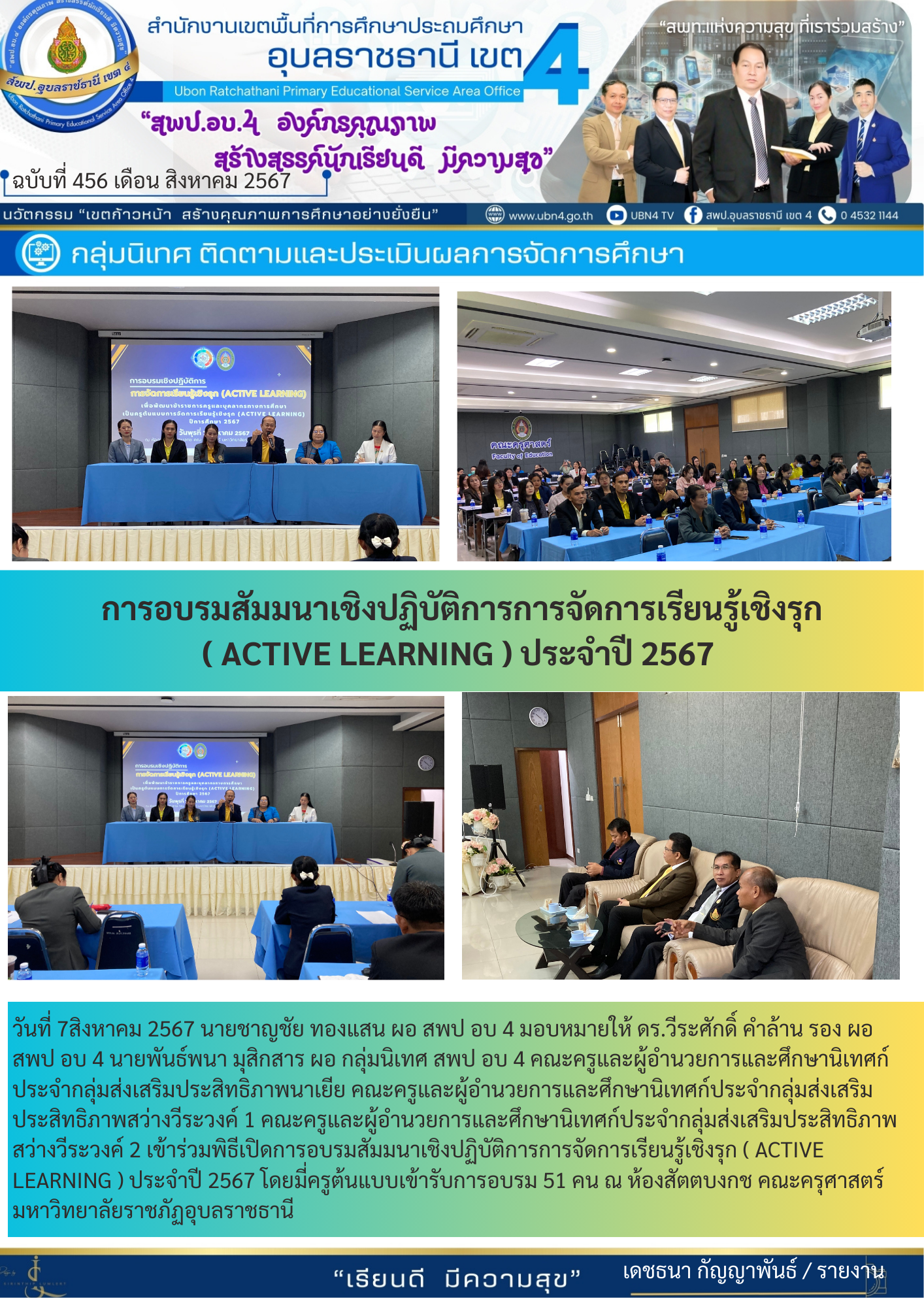 การอบรมสัมมนาเชิงปฏิบัติการการจัดการเรียนรู้เชิงรุก (Active Learning) ประจำปี 2567 จดหมายข่าวกลุ่มนิเทศ ติดตามและประเมินผลการจัดการศึกษา ก่อนหน้า ต่อไป
