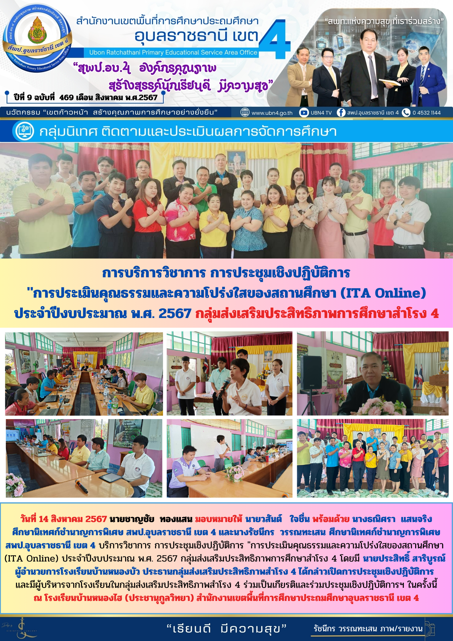 การบริหารวิชาการ การประชุมเชิงปฏิบัติการ "การประเมินคุณธรรมและความโปร่งใสของสถานศึกษา (ITA Online) ประจำปีงบประมาณ พ.ศ. 2567" จดหมายข่าวกลุ่มนิเทศ ติดตามและประเมินผลการจัดการศึกษา ก่อนหน้า ต่อไป