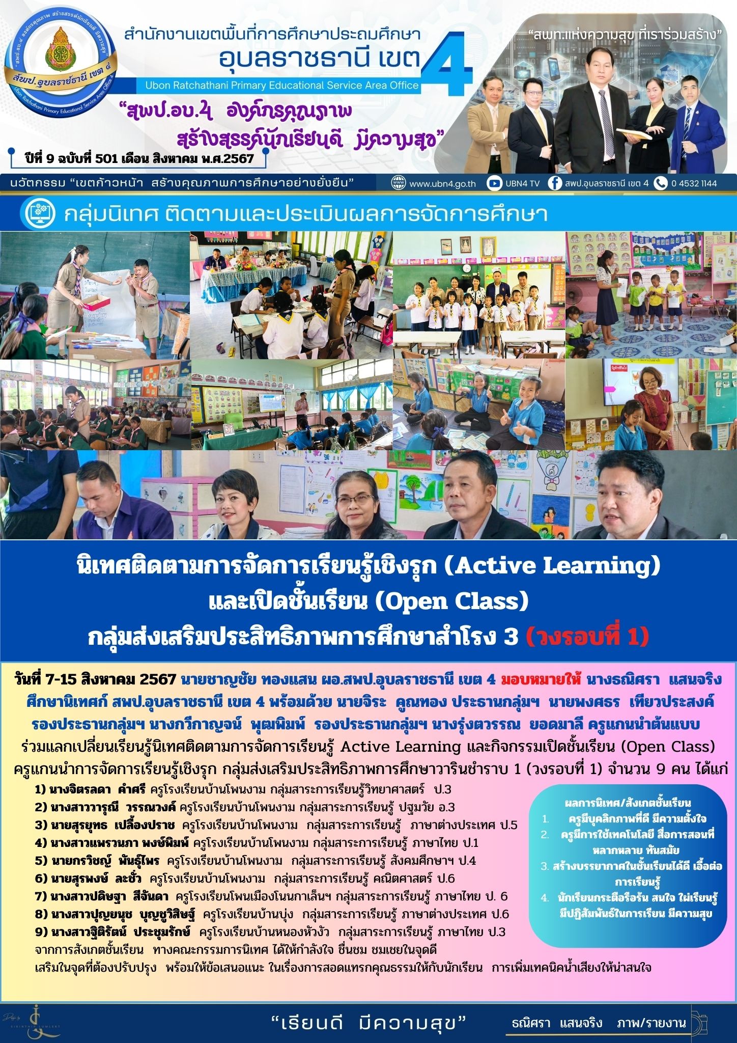 การนิเทศติดตามการจัดการเรียนรู้เชิงรุก (Active Learning) และเปิดชั้นเรียน (Open Class) กลุ่มส่งเสริมประสิทธิภาพการศึกษาสำโรง 3(วงรอบที่ 1) จดหมายข่าวกลุ่มนิเทศ ติดตามและประเมินผลการจัดการศึกษา ก่อนหน้า ต่อไป