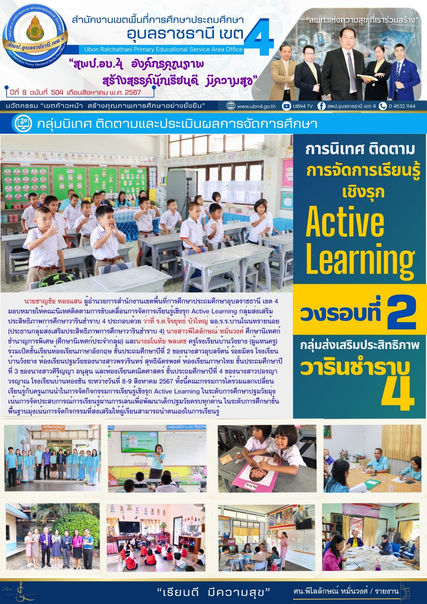 การนิเทศติดตามการจัดการเรียนรู้เชิงรุก (Active Learning)กลุ่มส่งเสริมประสิทธิภาพการศึกษาวารินชำราบ 4(วงรอบที่ 2) จดหมายข่าวกลุ่มนิเทศ ติดตามและประเมินผลการจัดการศึกษา ก่อนหน้า ต่อไป