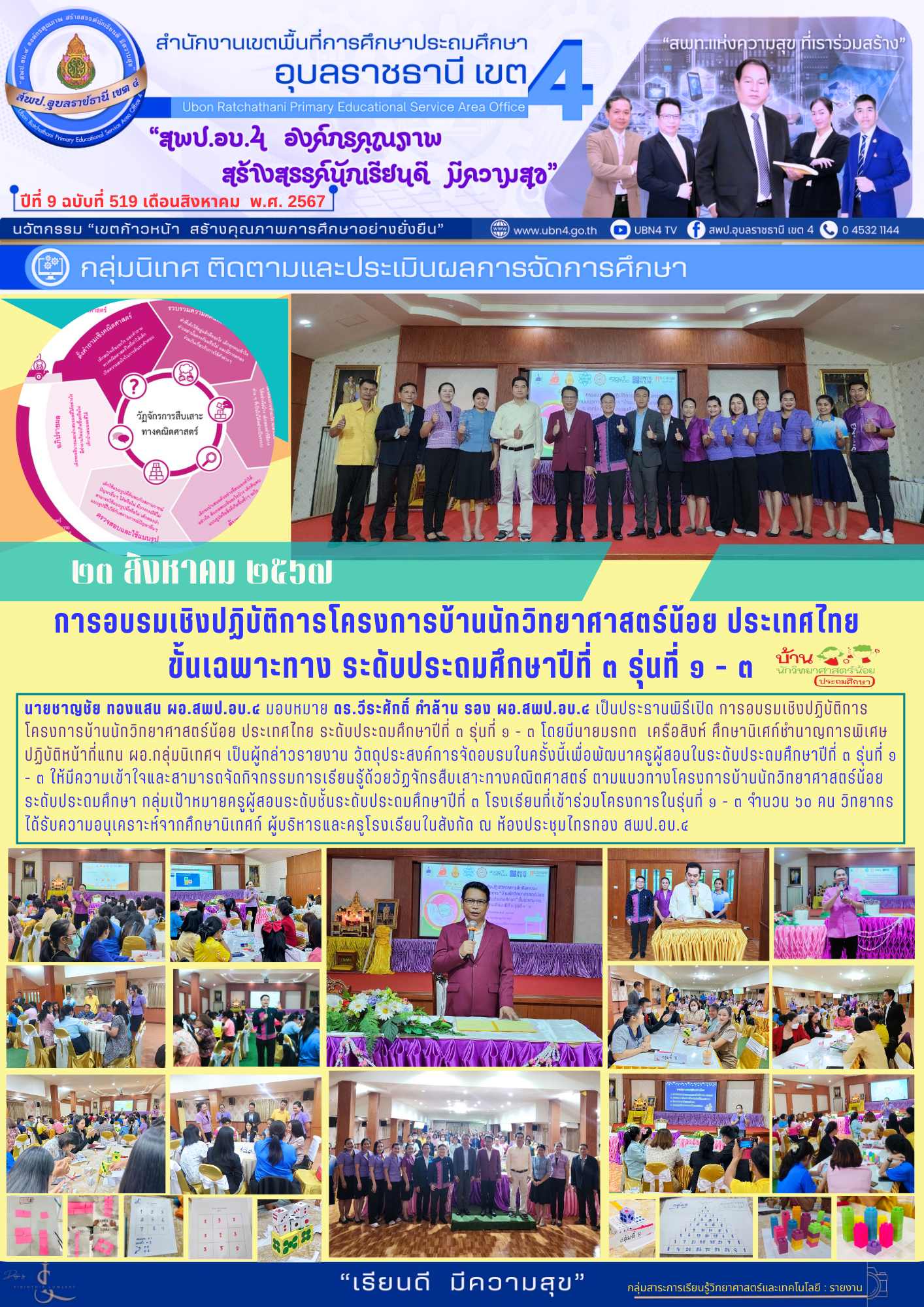 การอบรมเชิงปฏิบัติการโครงการบ้านนักวิทยาศาสตร์น้อย ประเทศไทย ชั้นเฉพาะทาง ระดับประถมศึกษาปีที่ 3 รุ่นที่ 1-3 จดหมายข่าวกลุ่มนิเทศ ติดตามและประเมินผลการจัดการศึกษา ก่อนหน้า ต่อไป