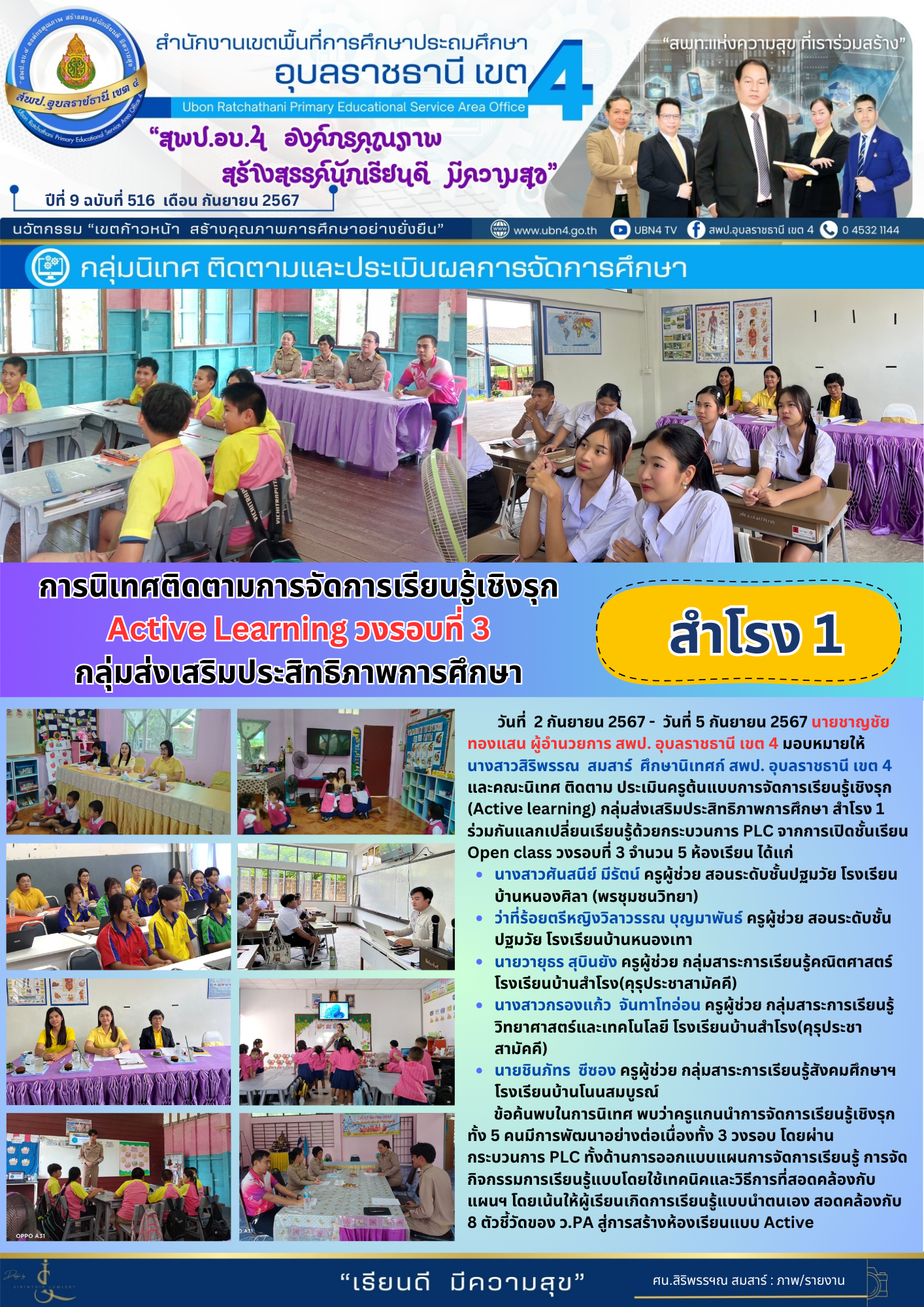 การนิเทศติดตามการจัดการเรียนรู้เชิงรุก Active Learning วงรอบที่ 3 กลุ่มส่งเสริมประสิทธิภาพการศึกษา สำโรง 1 จดหมายข่าวกลุ่มนิเทศ ติดตามและประเมินผลการจัดการศึกษา ก่อนหน้า ต่อไป