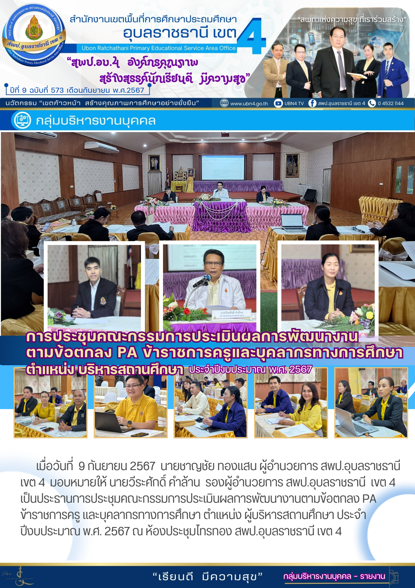 การประชุมคณะกรรมการประเมินผลการพัฒนางานตามข้อตกลง PA ข้าราชการครูและบุคลากรทางการศึกษา ตำแหน่ง บริหารสถานศึกษา ประจำปีงบประมาณ พ.ศ. 2567 จดหมายข่าวกลุ่มบริหารงานบุคคล ก่อนหน้า ต่อไป