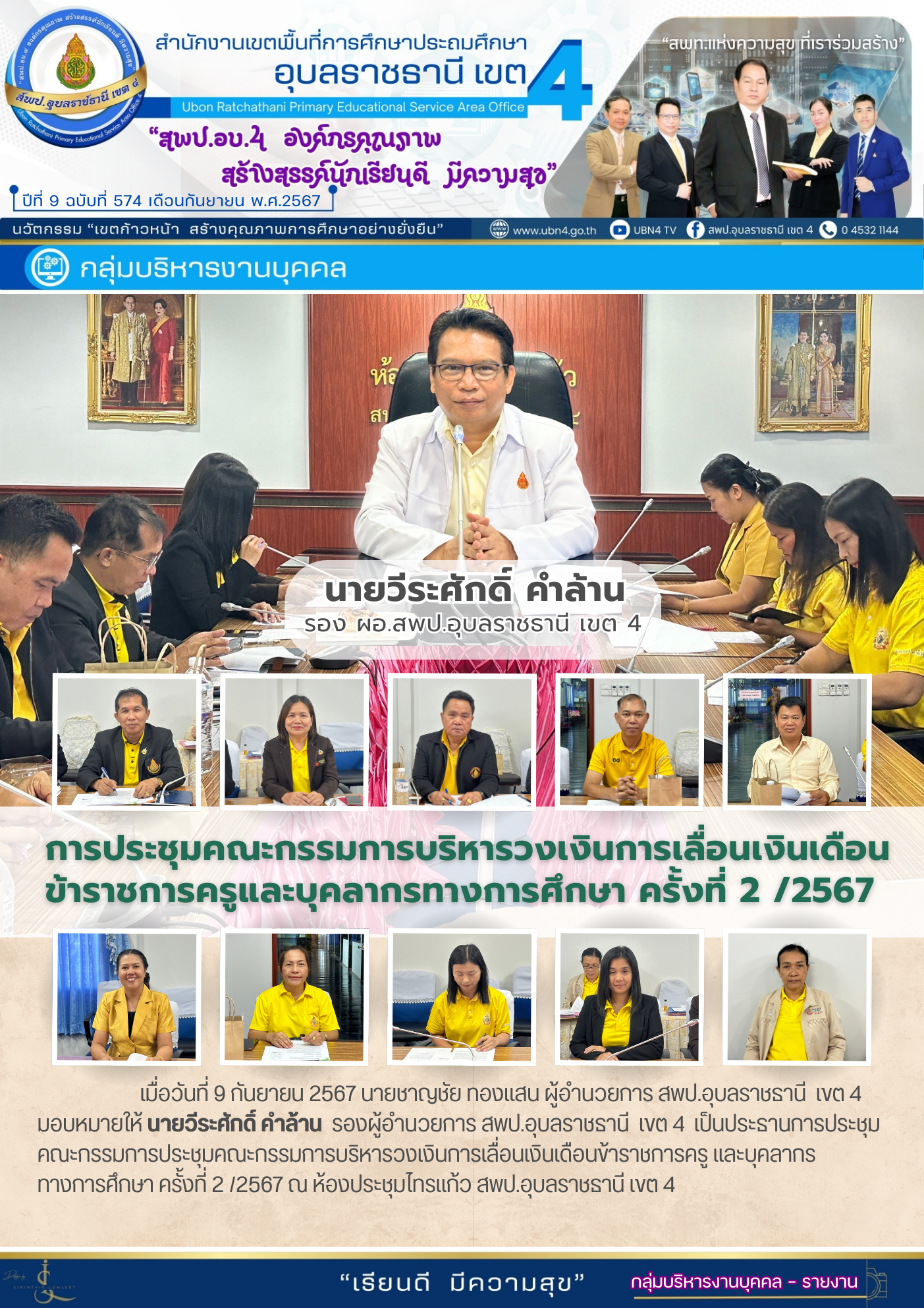 ประชุมคณะกรรมการบริหารวงเงิน การเลื่อนเงินเดือนข้าราชการครูและบุคลากรทางการศึกษา ครั้งที่ 2 /2567 จดหมายข่าวกลุ่มบริหารงานบุคคล ก่อนหน้า ต่อไป