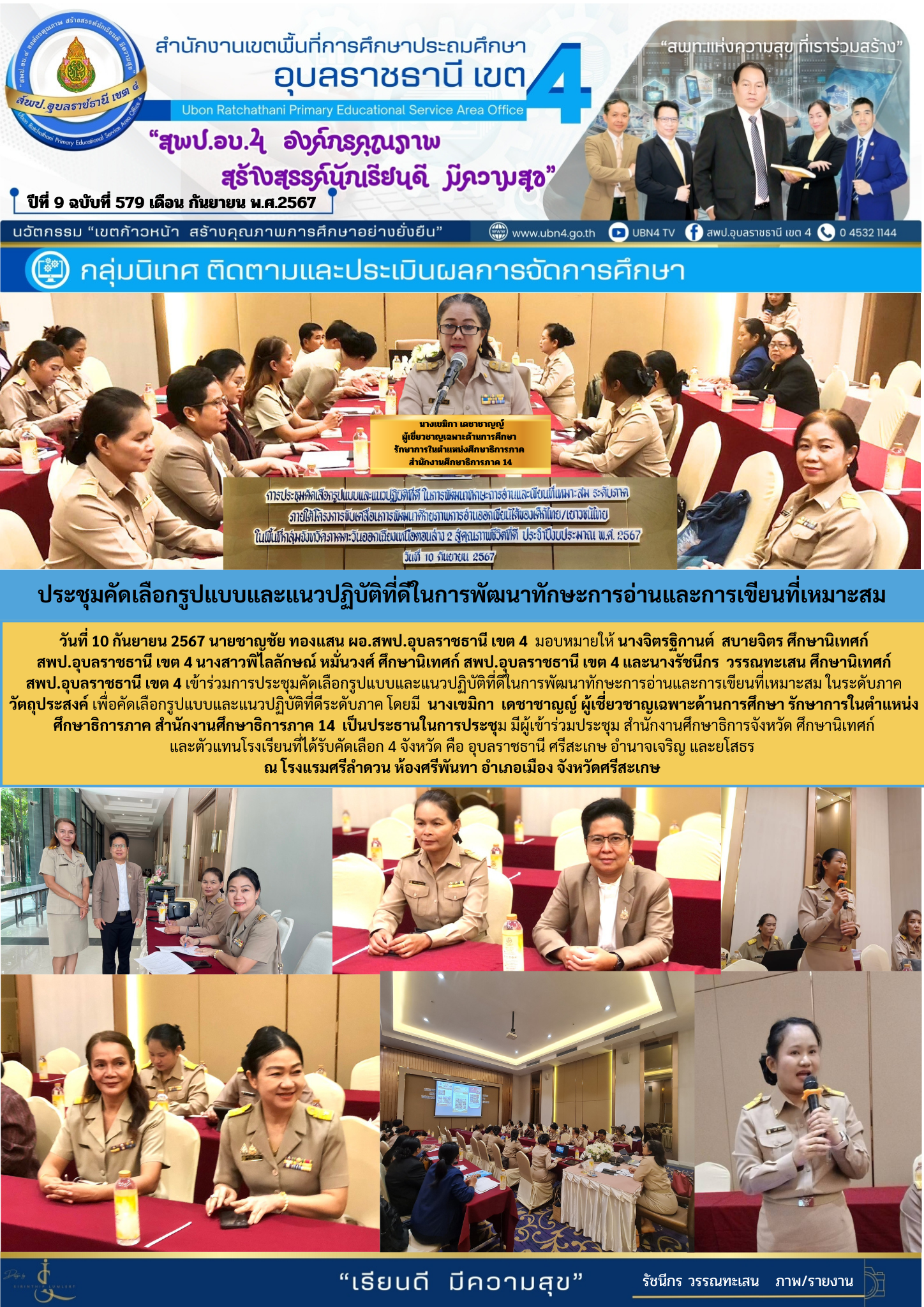 ประชุมคัดเลือกรูปแบบและแนวปฏิบัติที่ดีในการพัฒนาทักษะการอ่านและการเขียนที่เหมาะสม จดหมายข่าวกลุ่มนิเทศ ติดตามและประเมินผลการจัดการศึกษา ก่อนหน้า ต่อไป