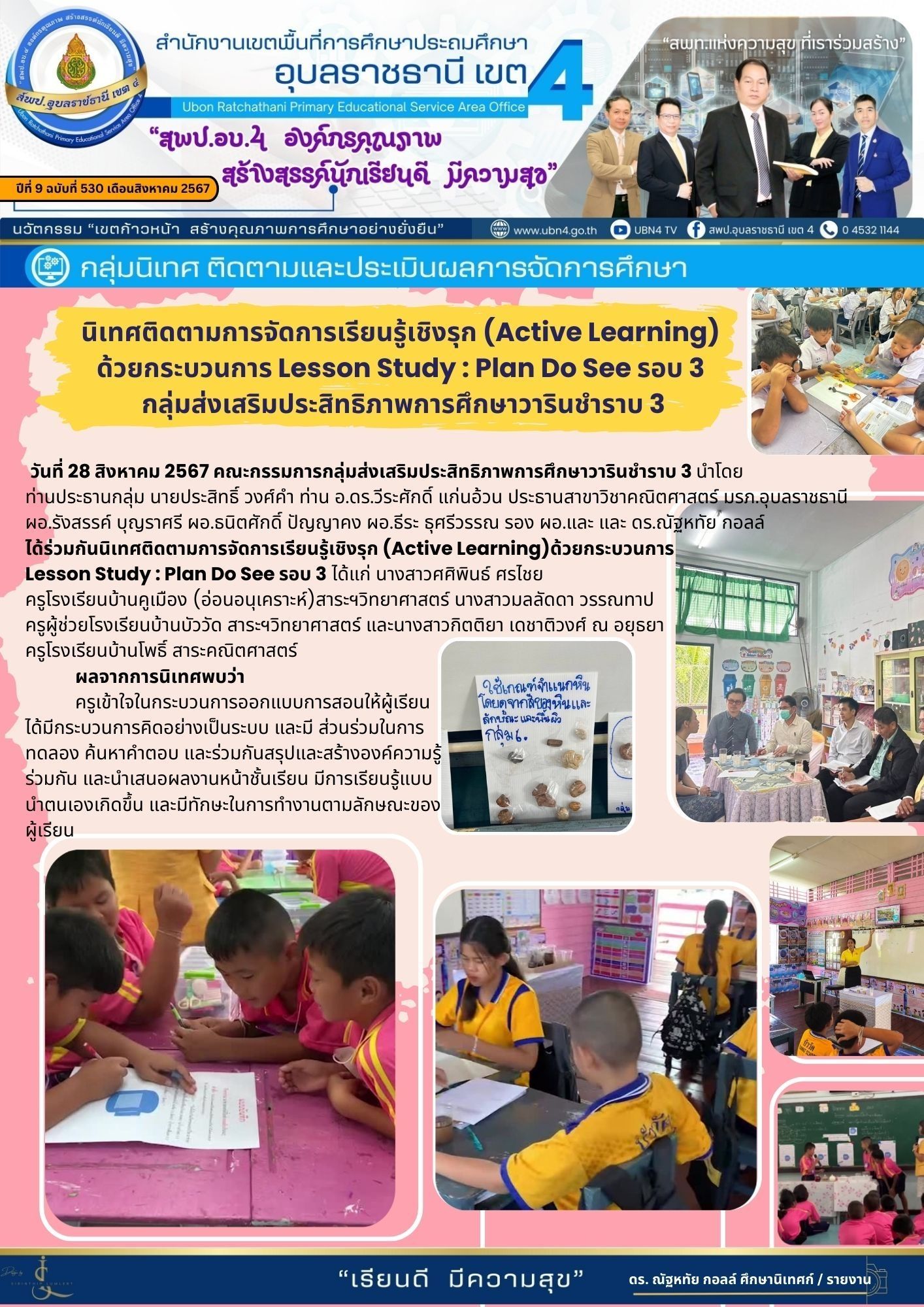 นิเทศติดตามการจัดการเรียนรู้เชิงรุก (Active Learning) ด้วยกระบวนการ Lesson Study : Plan Do See รอบ 3 กลุ่มส่งเสริมประสิทธิภาพการศึกษาวารินชำราบ 3 จดหมายข่าวกลุ่มนิเทศ ติดตามและประเมินผลการจัดการศึกษา ก่อนหน้า ต่อไป