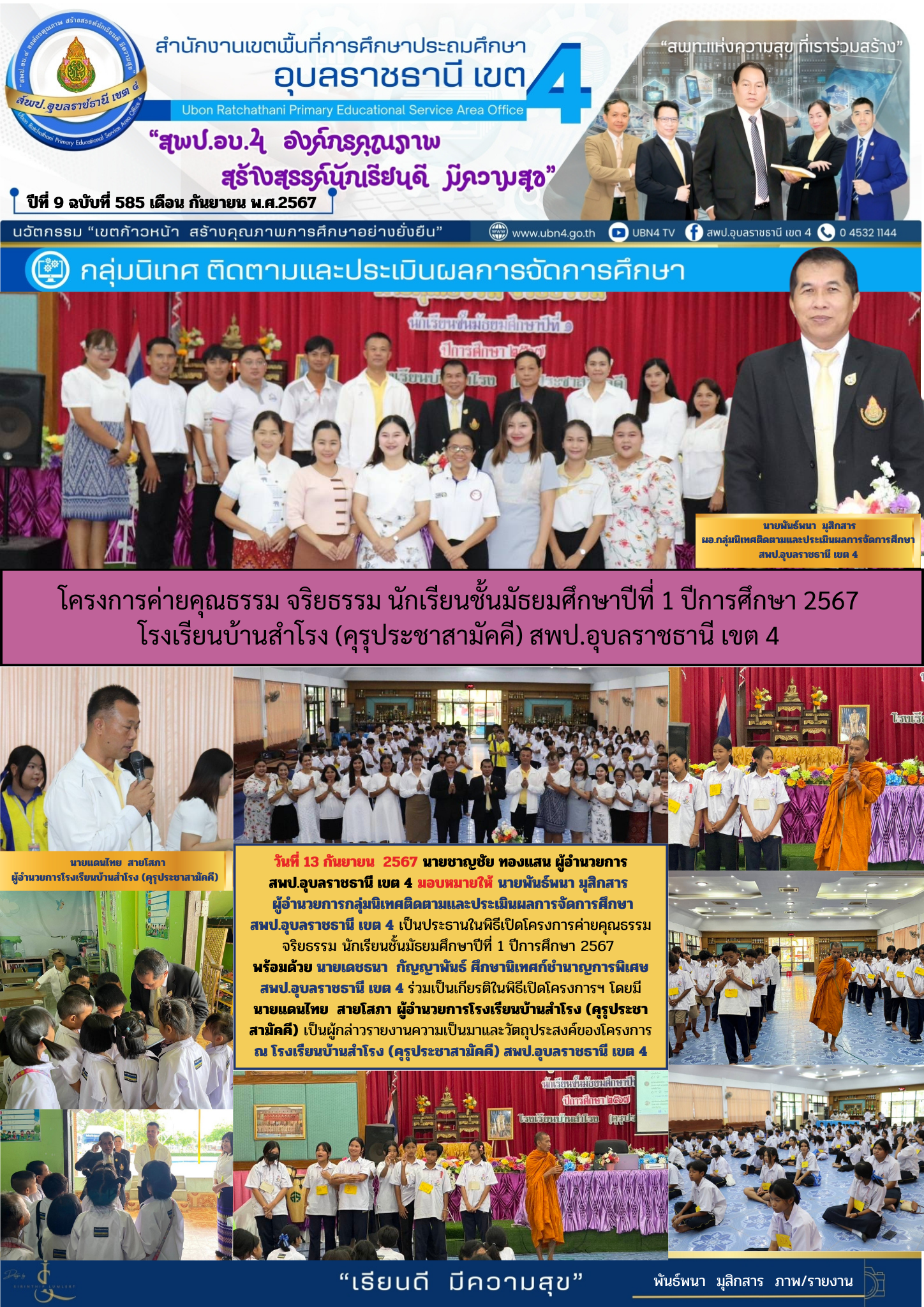 โครงการค่ายคุณธรรม จริยธรรม นักเรียนชั้นมัธยมศึกษาปีที่ 1 ปีการศึกษา 2567 โรงเรียนบ้านสำโรง (คุรุประชาสามัคคี) สพป.อุบลราชธานี เขต 4 จดหมายข่าวกลุ่มนิเทศ ติดตามและประเมินผลการจัดการศึกษา ก่อนหน้า ต่อไป