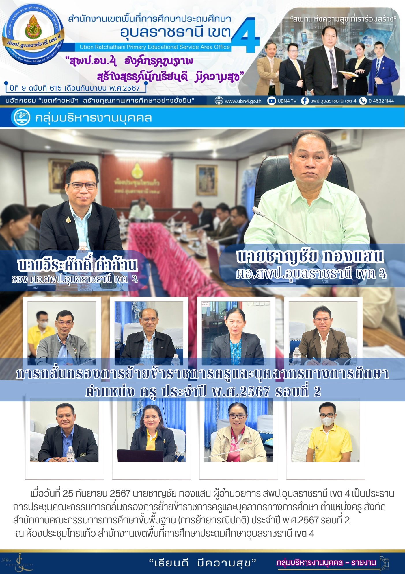 การกลั่นกรองการย้ายข้าราชการครูและบุคลากรทางการศึกษา ตำแหน่งครู ประจำปี พ.ศ.2567 รอบที่ 2 จดหมายข่าวกลุ่มบริหารงานบุคคล ภารกิจ ผอ.สพป.อุบลราชธานี เขต 4 ก่อนหน้า ต่อไป
