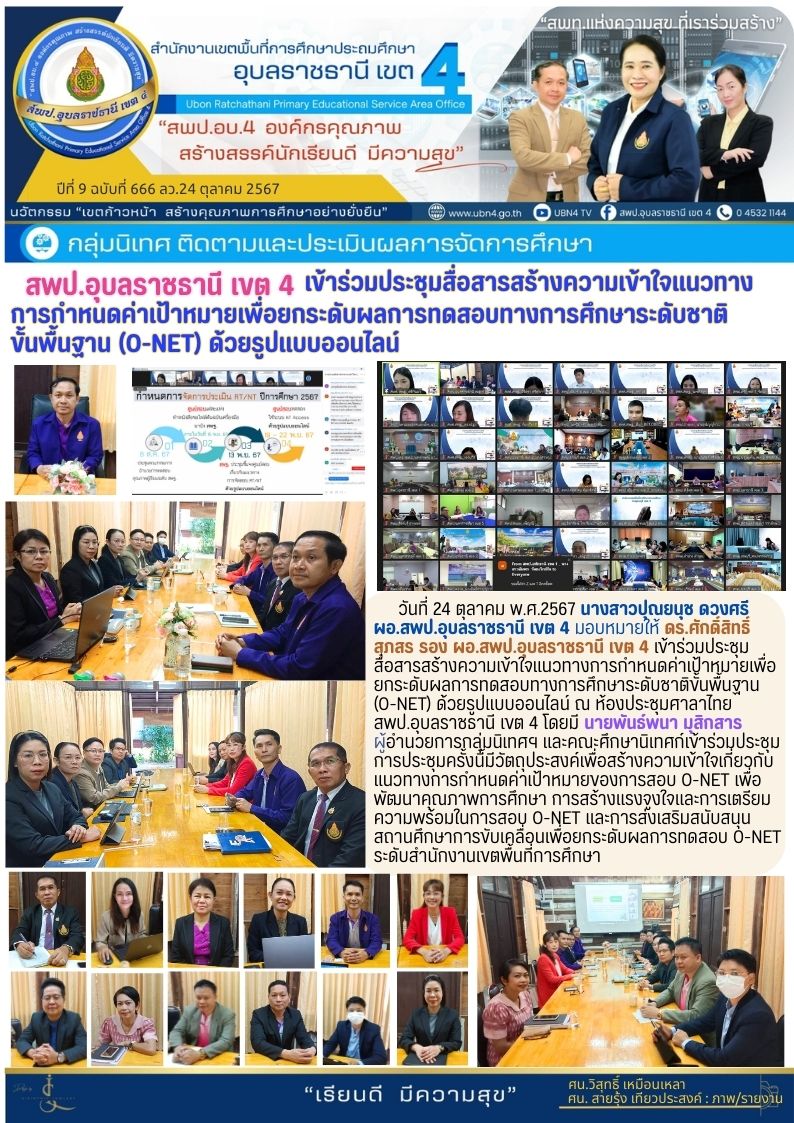 สพป.อุบลราชธานี เขต 4 เข้าร่วมประชุมสื่อสารความเข้าใจแนวทางการดำหนดค่าเป้าหมายเพื่อยกระดับผลการทดสอบทางการศึกษาระดับชาติขั้นพื้นฐาน (O-NET) ด้วยรูปแบบออนไลน์ จดหมายข่าวกลุ่มนิเทศ ติดตามและประเมินผลการจัดการศึกษา ภารกิจ ดร.ศักดิ์สิทธิ์ สุภสร ก่อนหน้า ต่อไป