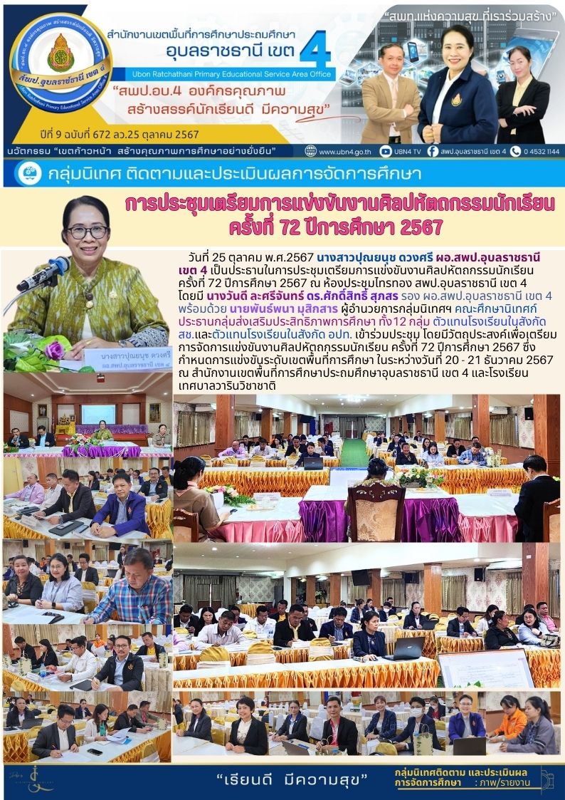 การประชุมเตรียมการแข่งขันงานศิลปหัตถกรรมนักเรียน ครั้งที่ 72 ปีการศึกษา 2567 จดหมายข่าวกลุ่มนิเทศ ติดตามและประเมินผลการจัดการศึกษา ภารกิจ ผอ.สพป.อุบลราชธานี เขต 4 ภารกิจ ดร.ศักดิ์สิทธิ์ สุภสร ก่อนหน้า ต่อไป