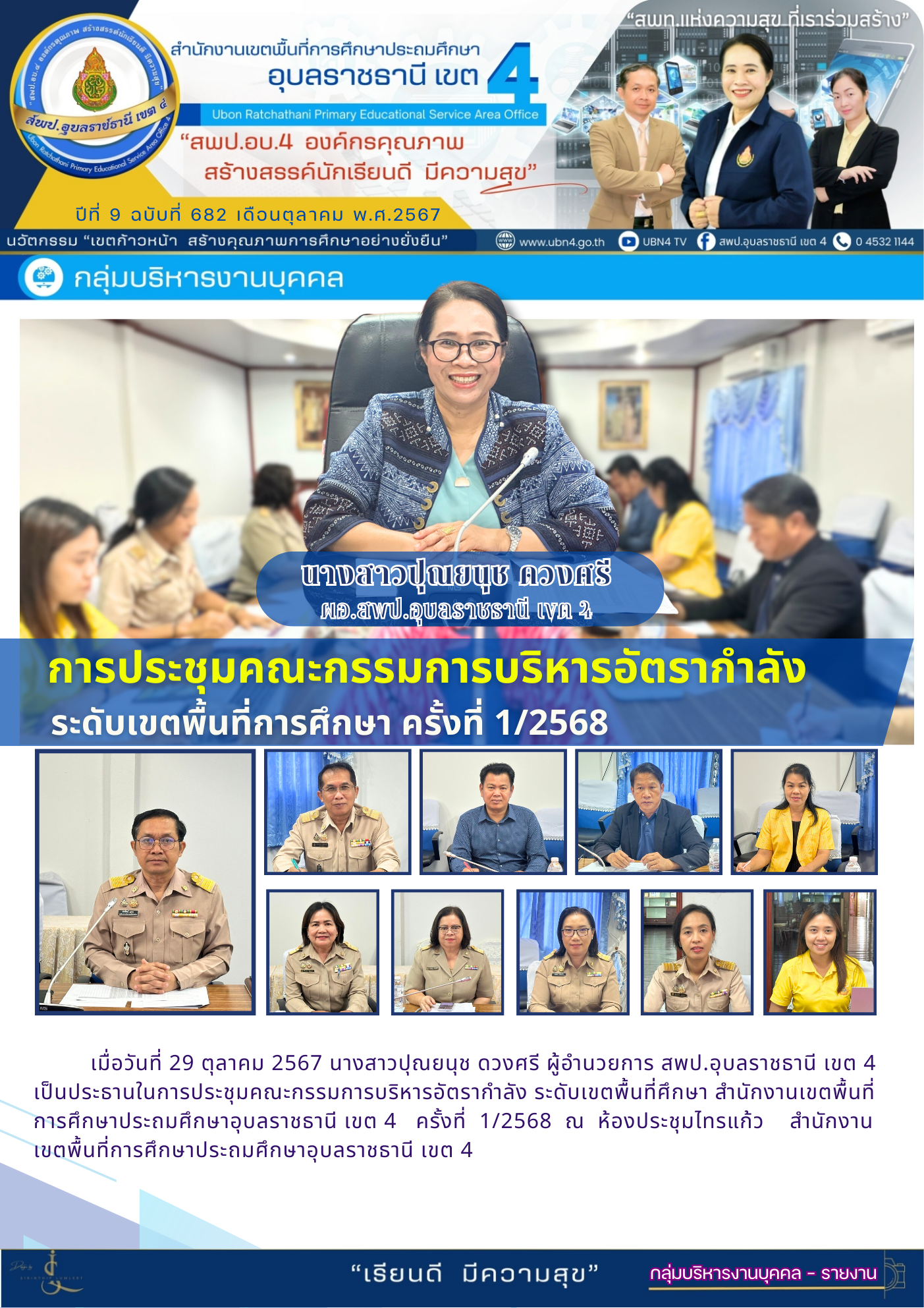 การประชุมคณะกรรมการบริหารอัตรากำลัง ระดับเขตพื้นที่การศึกษา ครั้งที่ 1/2568 จดหมายข่าวกลุ่มบริหารงานบุคคล ภารกิจ ผอ.สพป.อุบลราชธานี เขต 4 ภารกิจ ดร.ศักดิ์สิทธิ์ สุภสร ก่อนหน้า ต่อไป