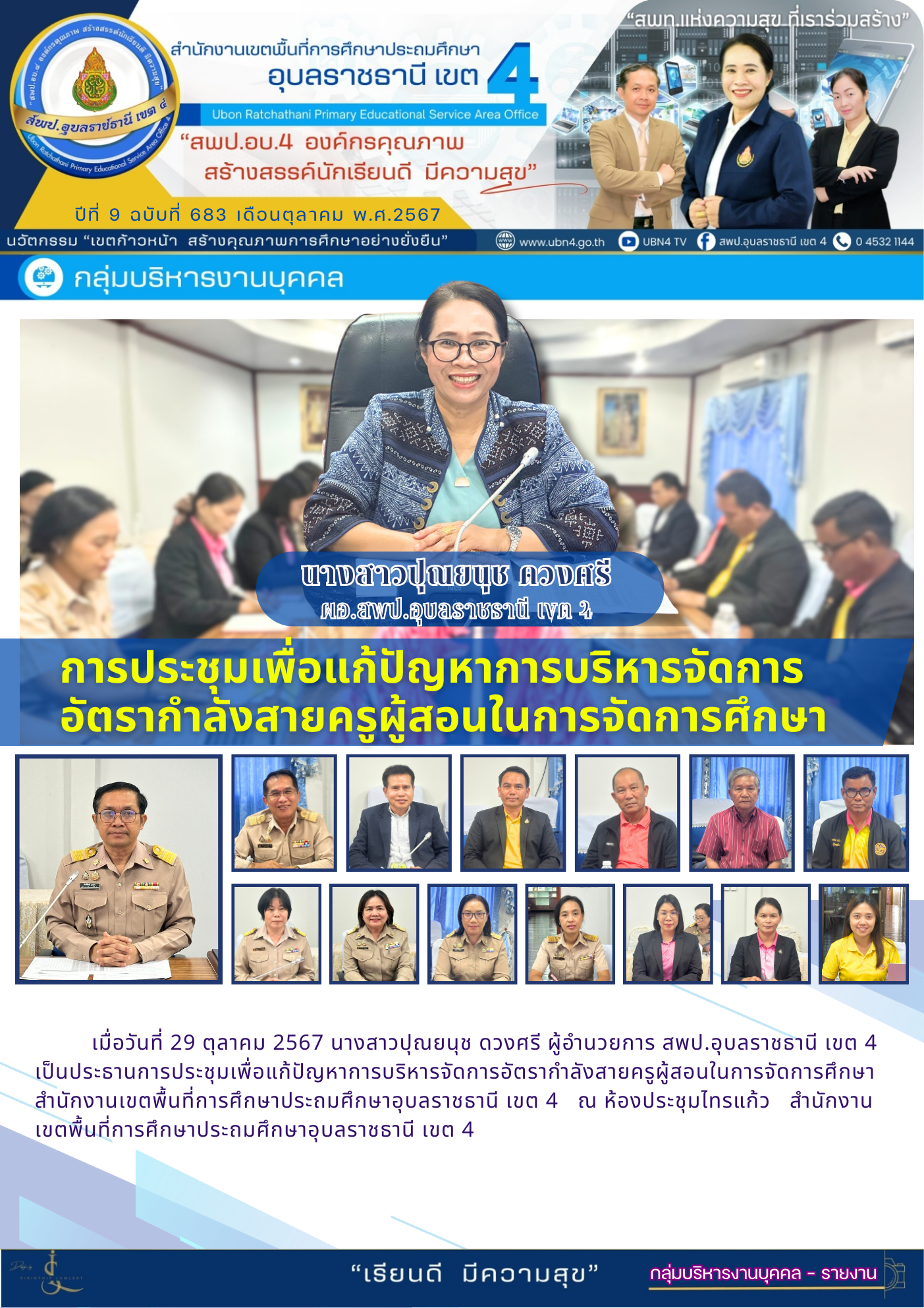 การประชุมเพื่อแก้ปัญหาการบริหารจัดการอัตรากำลังสายครูผู้สอนในการจัดการศึกษา จดหมายข่าวกลุ่มบริหารงานบุคคล ภารกิจ ผอ.สพป.อุบลราชธานี เขต 4 ภารกิจ ดร.ศักดิ์สิทธิ์ สุภสร ก่อนหน้า ต่อไป
