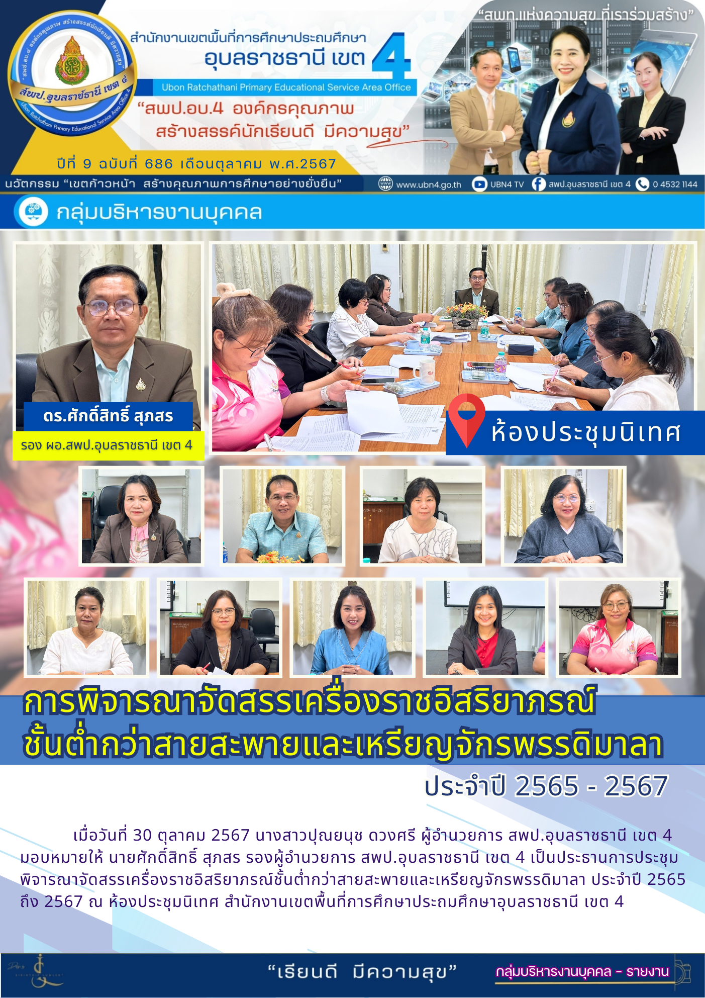 การพิจารณาจัดสรรเครื่องราชอิสริยาภรณ์ชั้นต่ำกว่าสายสะพายและเหรียญจักรพรรดิมาลา ประจำปี 2565 - 2567 จดหมายข่าวกลุ่มบริหารงานบุคคล ภารกิจ ดร.ศักดิ์สิทธิ์ สุภสร ก่อนหน้า ต่อไป