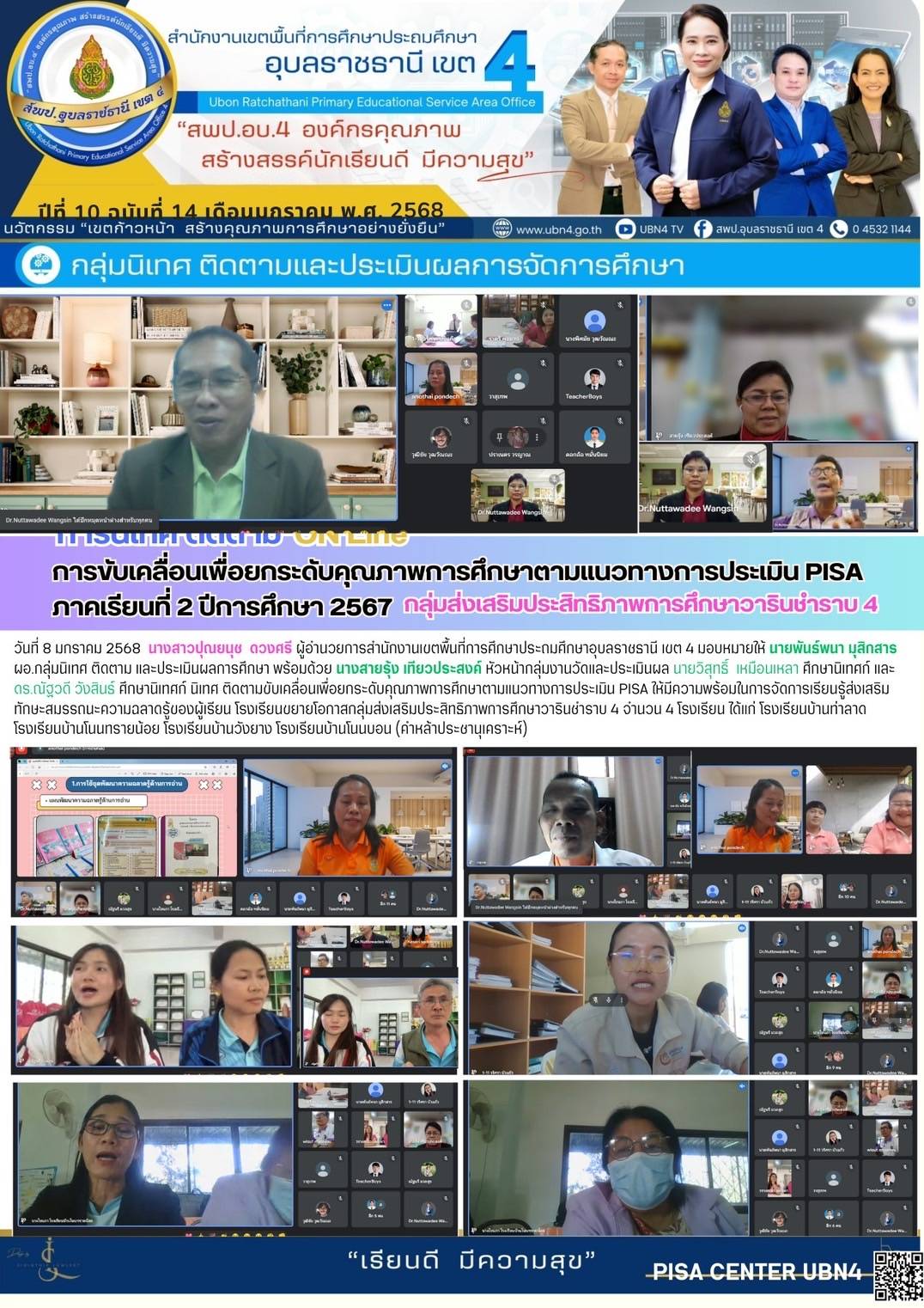 การนิเทศ ติดตาม Online การขับเคลื่อนเพื่อยกระดับคุณภาพการศึกษาตามแนวทางการประเมิน PISA ภาคเรียนที่ 2 ปีการศึกษา 2567 กลุ่มส่งเสริมประสิทธิภาพการศึกษาวารินชำราบ 4 ก่อนหน้า ต่อไป