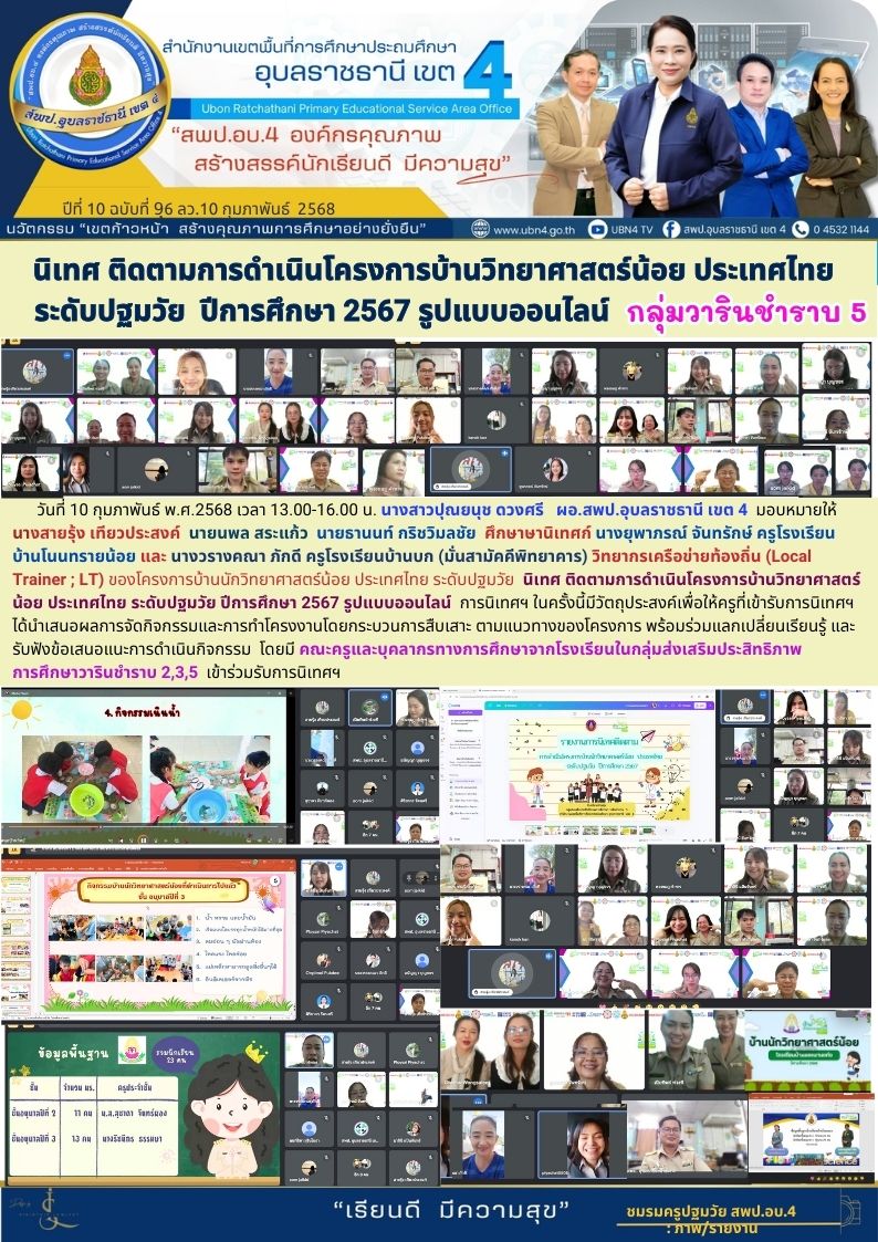 นิเทศ ติดตามการดำเนินโครงการบ้านวิทนาศาสตร์น้อย ประเทศไทย ระดับปฐมวัย ปีการศึกษา 2567 รูปแบบออนไลน์ กลุ่มวารินชำราบ 5 ก่อนหน้า ต่อไป