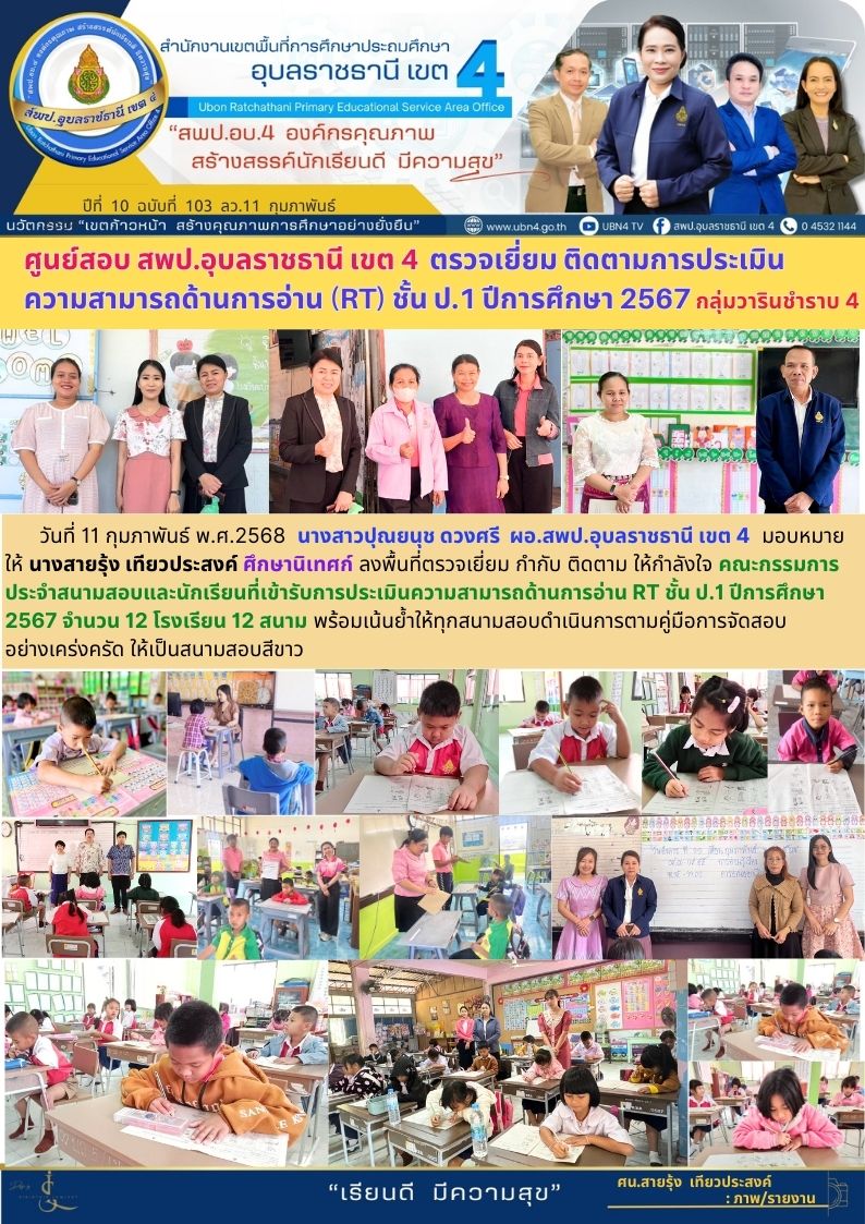 ตรวจเยี่ยม ติดตามการประเมินความสามารถด้านการอ่าน (RT) ชั้น ป.1 ปีการศึกษา 2567 จำนวน 12 โรงเรียน กลุ่มวารินชำราบ 4 ก่อนหน้า ต่อไป