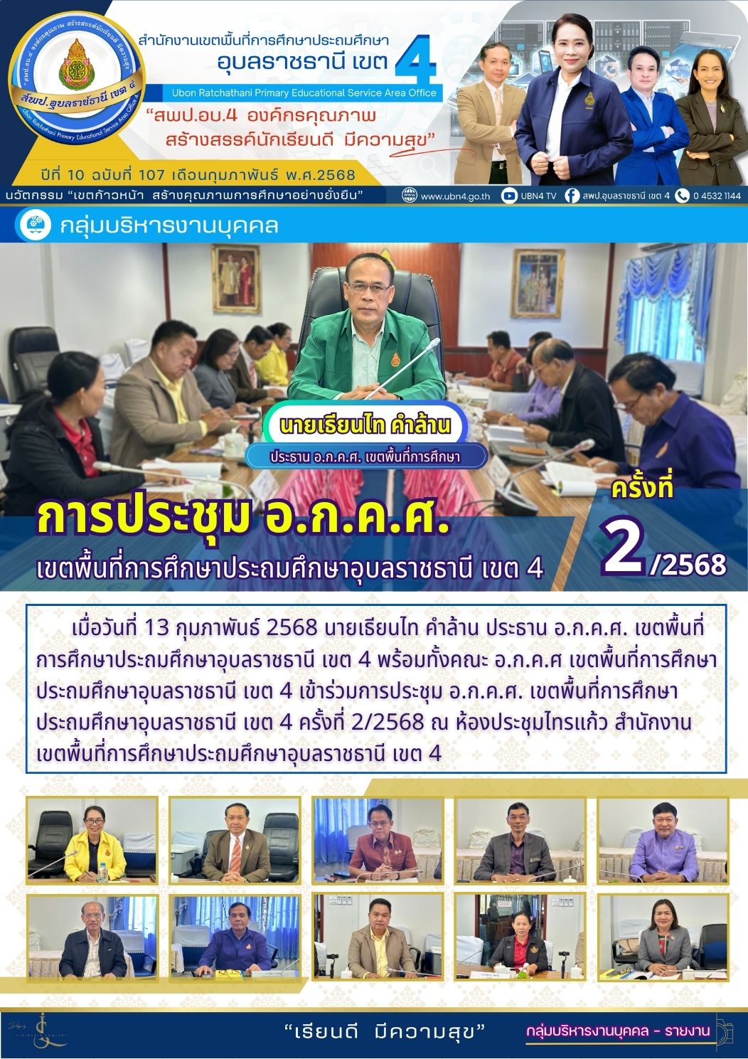 การประชุม อ.ก.ค.ศ. เขตพื้นที่การศึกษาประถมศึกษาอุบลราชธานี เขต 4 ครั้งที่ 2/2568 จดหมายข่าวกลุ่มบริหารงานบุคคล ภารกิจ รอง ผอ.สพป.อุบลราชธานี เขต 4 ภารกิจ ดร.ศักดิ์สิทธิ์ สุภสร ก่อนหน้า ต่อไป