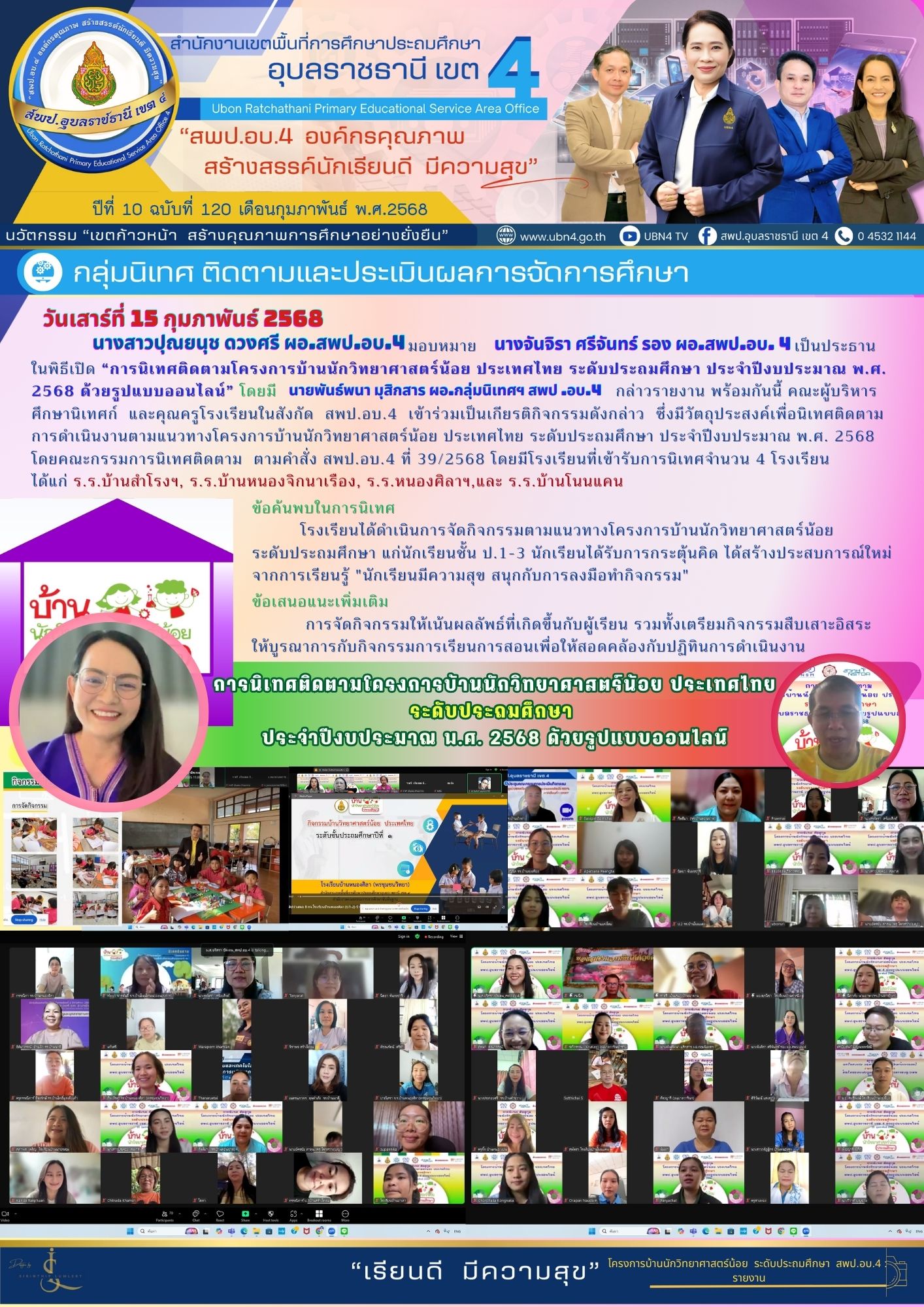 พิธีเปิด“การนิเทศติดตามโครงการบ้านนักวิทยาศาสตร์น้อย ประเทศไทย ระดับประถมศึกษา ประจำปีงบประมาณ พ.ศ. 2568 ด้วยรูปแบบออนไลน์" ภารกิจ นางจันจิรา ศรีจันทร์ ก่อนหน้า ต่อไป