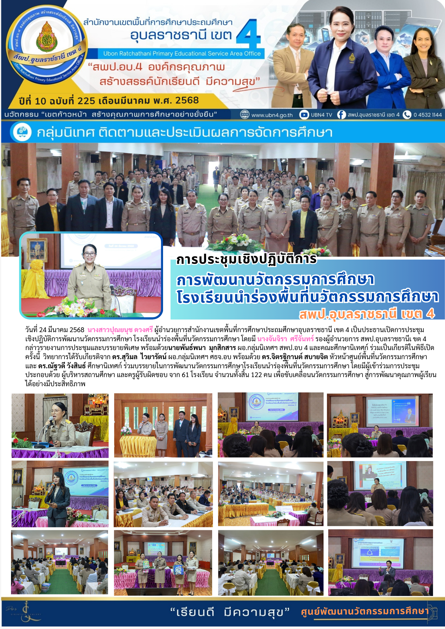 การประชุมเชิงปฏิบัติการการพัฒนานวัตกรรมการศึกษา โรงเรียนนำร่องพื้นที่นวัตกรรมการศึกษา สพป.อุบลราชธานี เขต 4 ภารกิจ ผอ.สพป.อุบลราชธานี เขต 4 ภารกิจ นางจันจิรา ศรีจันทร์ ก่อนหน้า ต่อไป