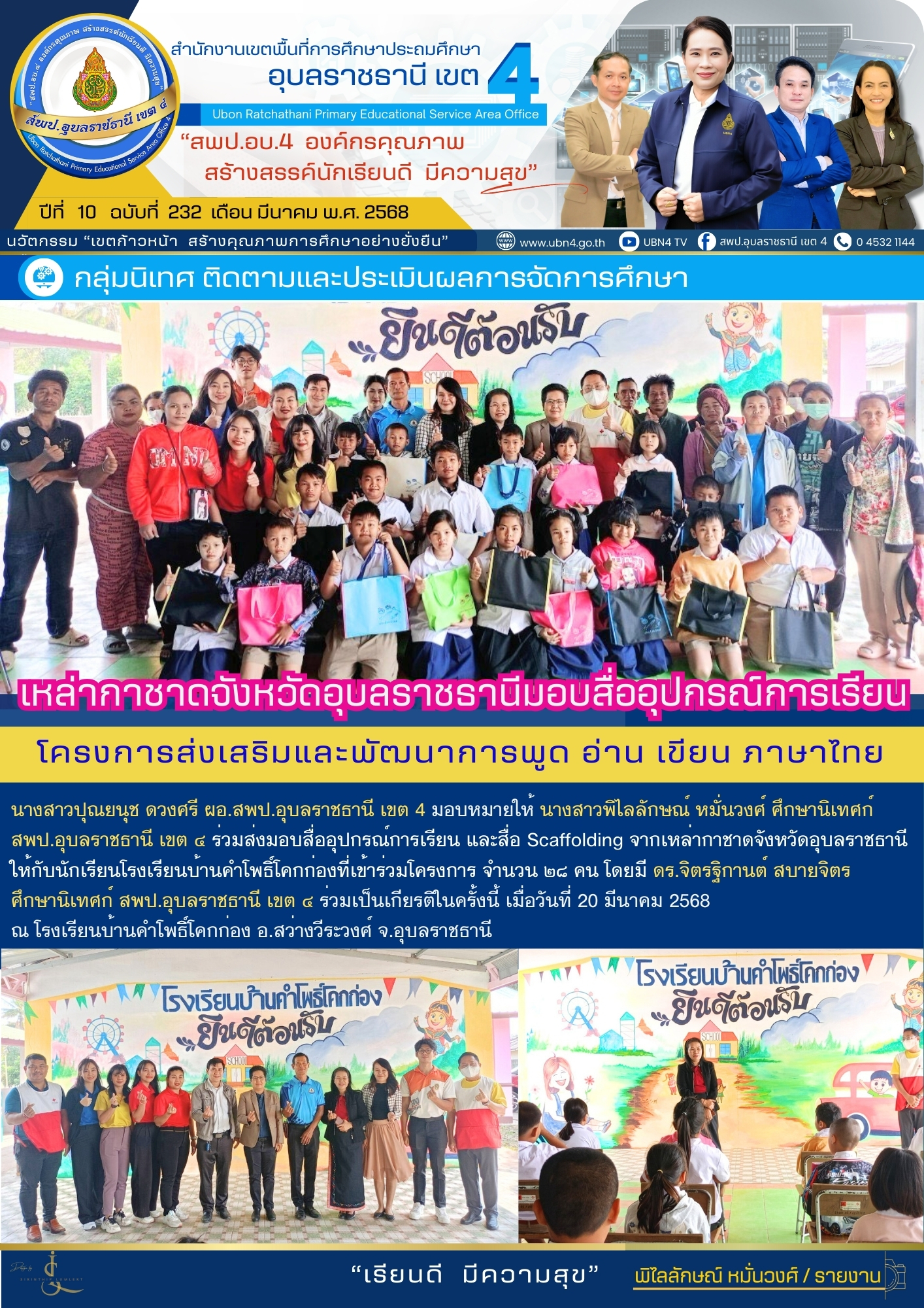 เหล่ากาชาดจังหวัดอุบลราชธานี มอบสื่ออุปกรณ์การเรียน โครงการส่งเสริมและพัฒนาการพูด อ่าน เขียน ภาษาไทย ก่อนหน้า ต่อไป