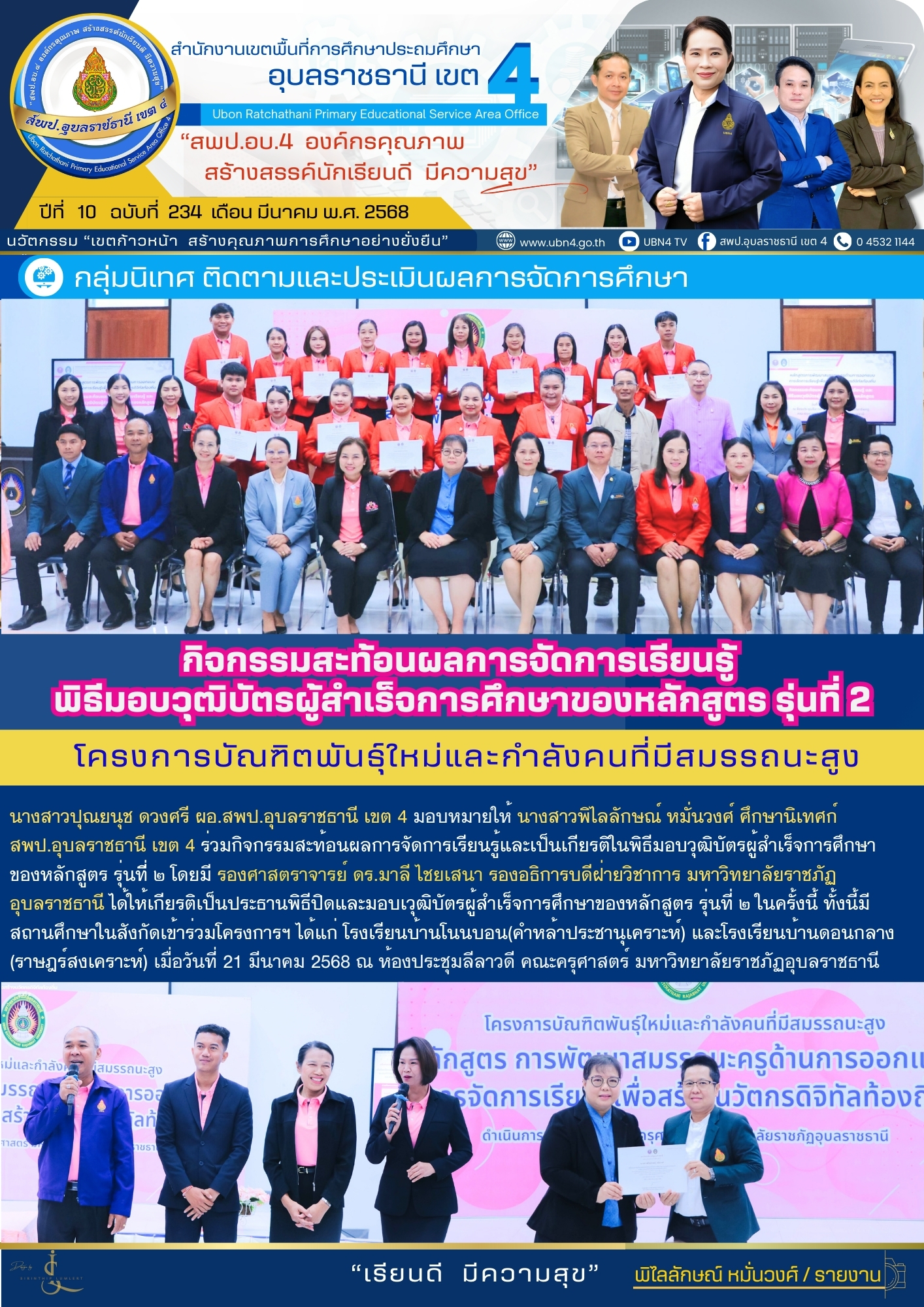 กิจกรรมสะท้อนผลการจัดการเรียนรู้ พิธีมอบวุฒิบัตรผู้สำเร็จการศึกษาของหลักสูตร รุ่นที่ 2 โครงการบัณฑิตพันธุ์ใหม่และกำลังคนที่มีสมรรถนะสูง ก่อนหน้า ต่อไป