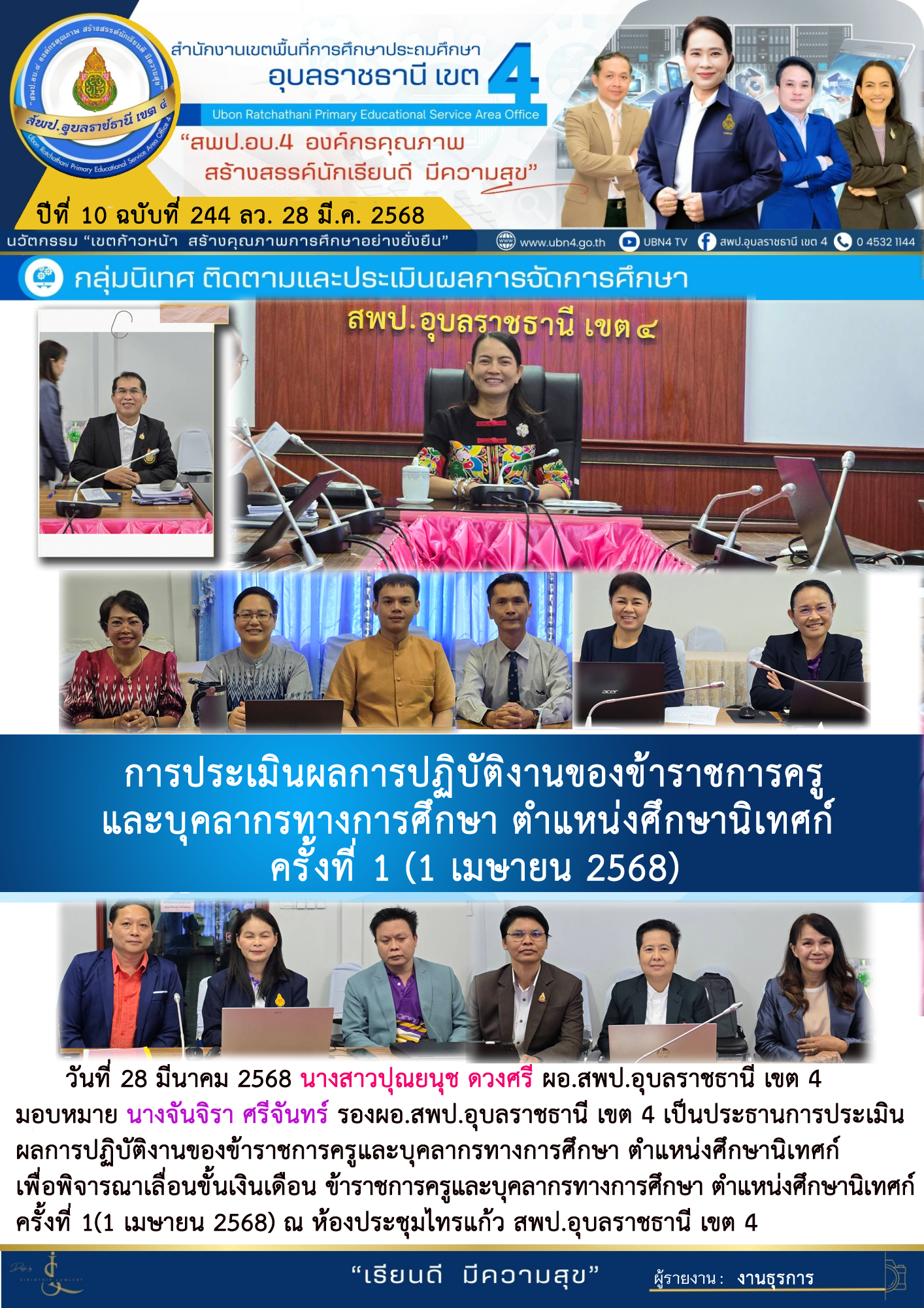 การประเมินผลการปฏิบัติงานของข้าราชการครูและบุคลากรทางการศึกษา ตำแหน่งศึกษานิเทศก์ ครั้งที่ 1 (1 เมษายน 2568) ภารกิจ นางจันจิรา ศรีจันทร์ ก่อนหน้า ต่อไป