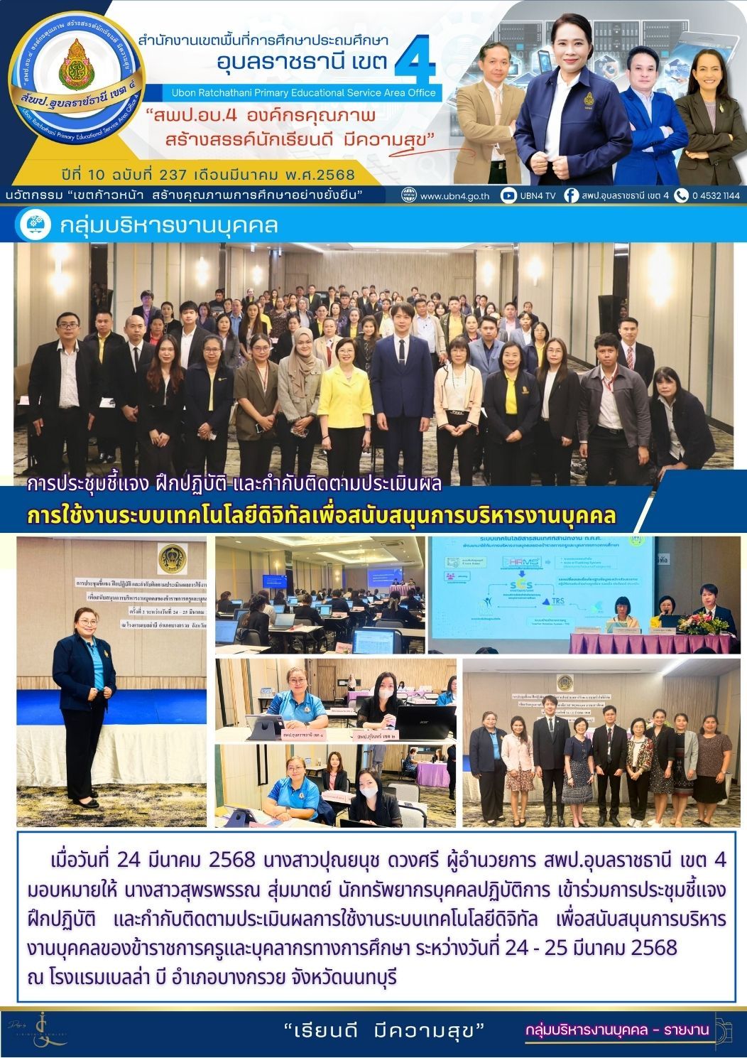 การประชุมชี้แจง ฝึกปฏิบัติ และกำกับติดตามประเมินผลการใช้งานระบบเทคโนโลยีดิจิทัล เพื่อสนับสนุนการบริหารงานบุคคล จดหมายข่าวกลุ่มบริหารงานบุคคล ก่อนหน้า ต่อไป