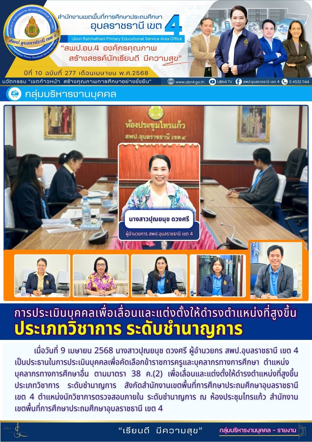 การประเมินบุคคลเพื่อเลื่อนและแต่งตั้งให้ดำรงตำแหน่งที่สูงขึ้น ประเภทวิชาการ ระดับชำนาญการ จดหมายข่าวกลุ่มบริหารงานบุคคล ภารกิจ ผอ.สพป.อุบลราชธานี เขต 4 ก่อนหน้า ต่อไป