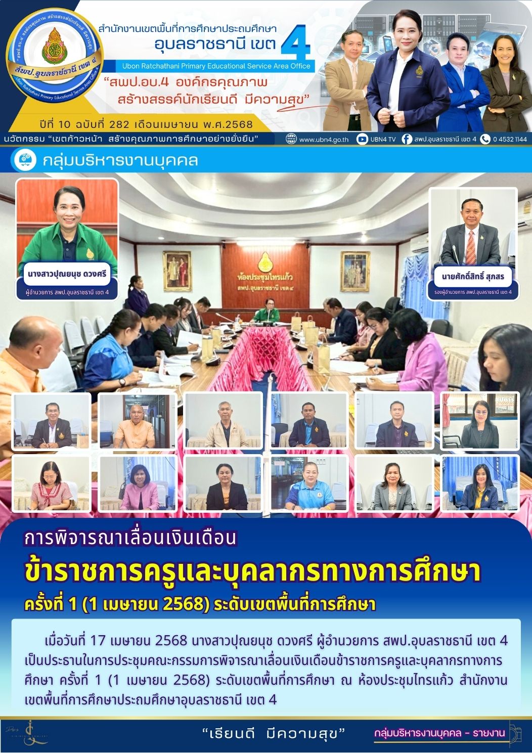 การพิจารณาเลื่อนเงินเดือนข้าราชการครูและบุคลากรทางการศึกษา ครั้งที่ 1 (1 เมษายน 2568) ระดับเขตพื้นที่การศึกษา จดหมายข่าวกลุ่มบริหารงานบุคคล ภารกิจ ผอ.สพป.อุบลราชธานี เขต 4 ภารกิจ รอง ผอ.สพป.อุบลราชธานี เขต 4 ภารกิจ ดร.ศักดิ์สิทธิ์ สุภสร ก่อนหน้า ต่อไป