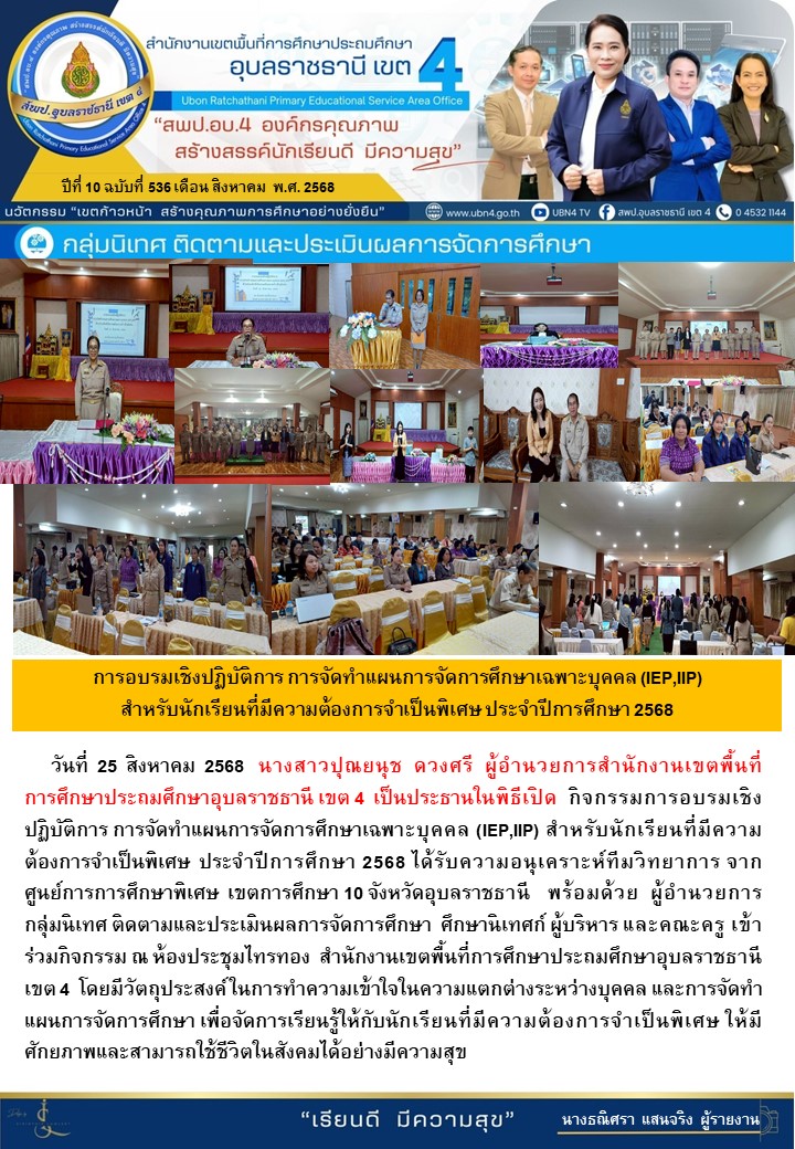 การอบรมเชิงปฏิบัติการ การจัดทำแผนการจัดการศึกษาเฉพาะบุคคล (IEP,IIP) สำหรับนักเรียนที่มีความต้องการจำเป็นพิเศษ ประจำปีการศึกษา 2568 ภารกิจ ผอ.สพป.อุบลราชธานี เขต 4 ก่อนหน้า ต่อไป